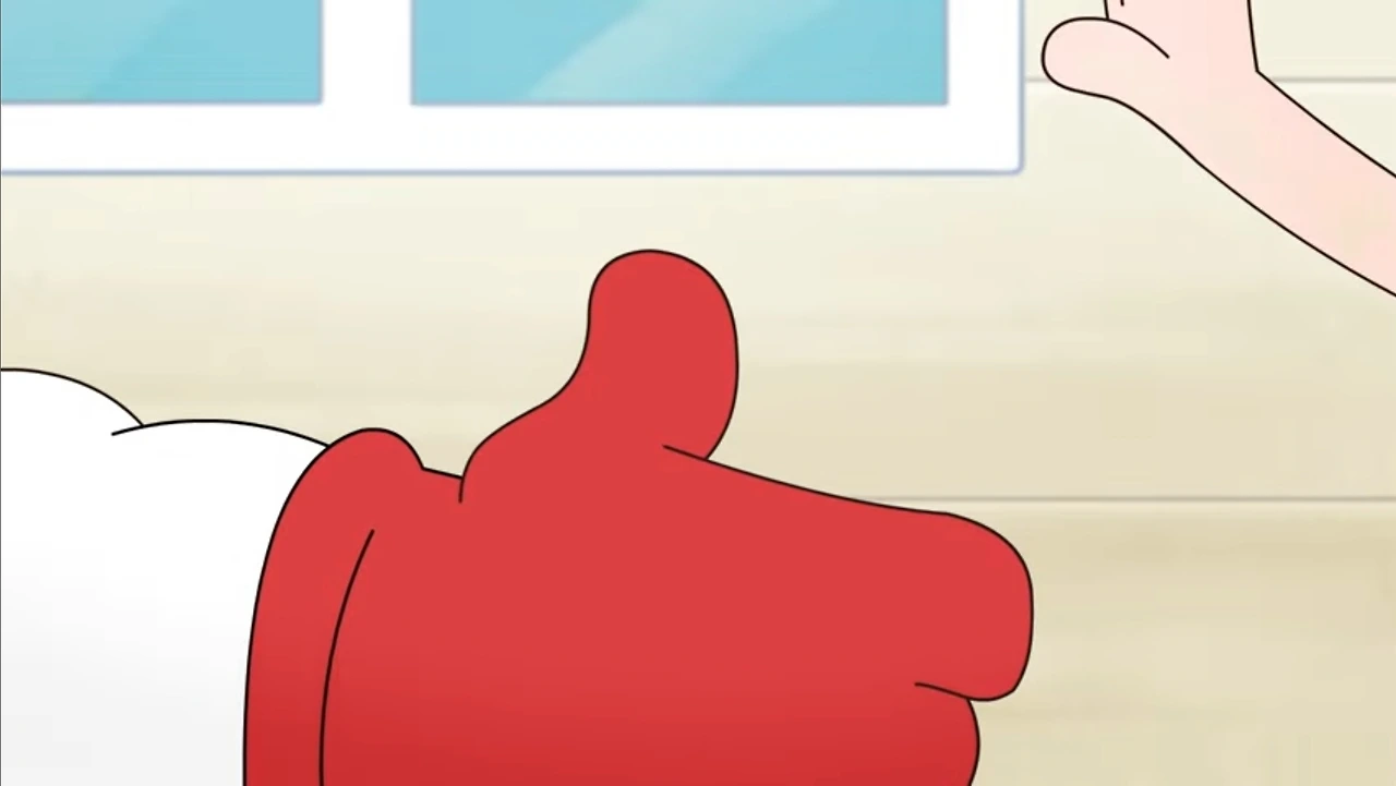 이 애니메이션의 아빠도 방구를 뀌기 전에 아이에게 엄지 손가락을 누르라고 하는 게 아닌가?