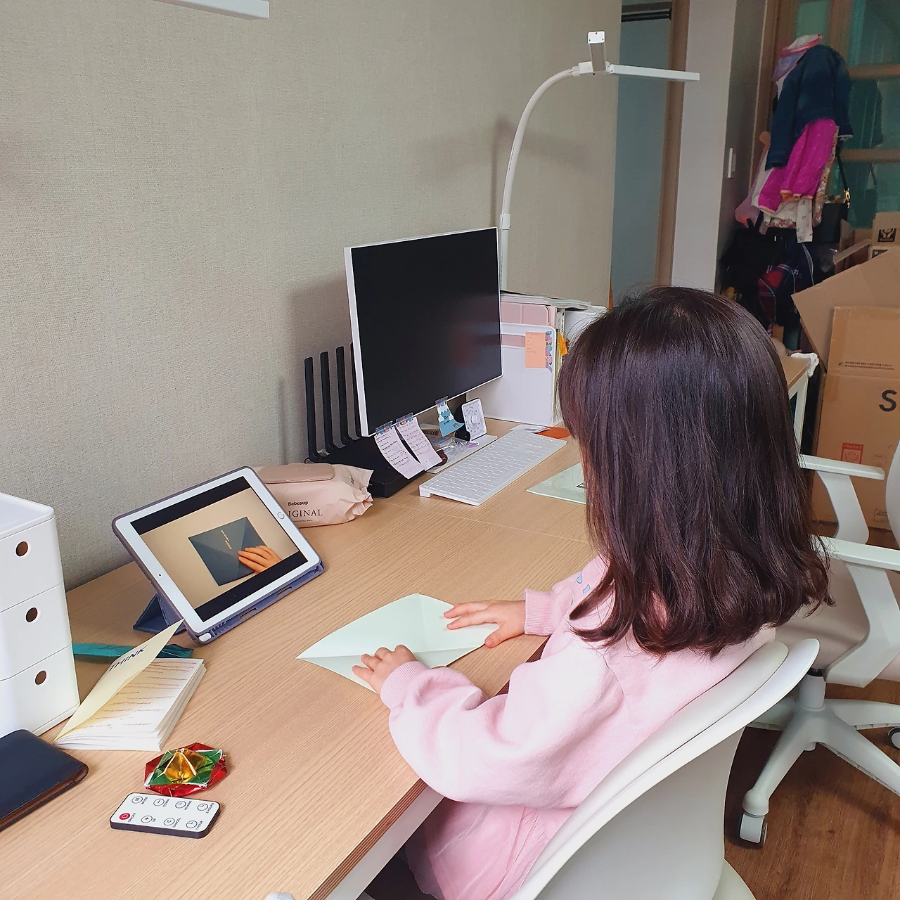 아직은 책상에 앉아 쿨샷을 먹고, 종이접기를 하는 수준이지만, 거실이라는 오픈된 공간에서 가족이 함께 공부와 독서, 일을 해나갈 수 있다는 인식이 자연스레 스며들면 좋겠다.