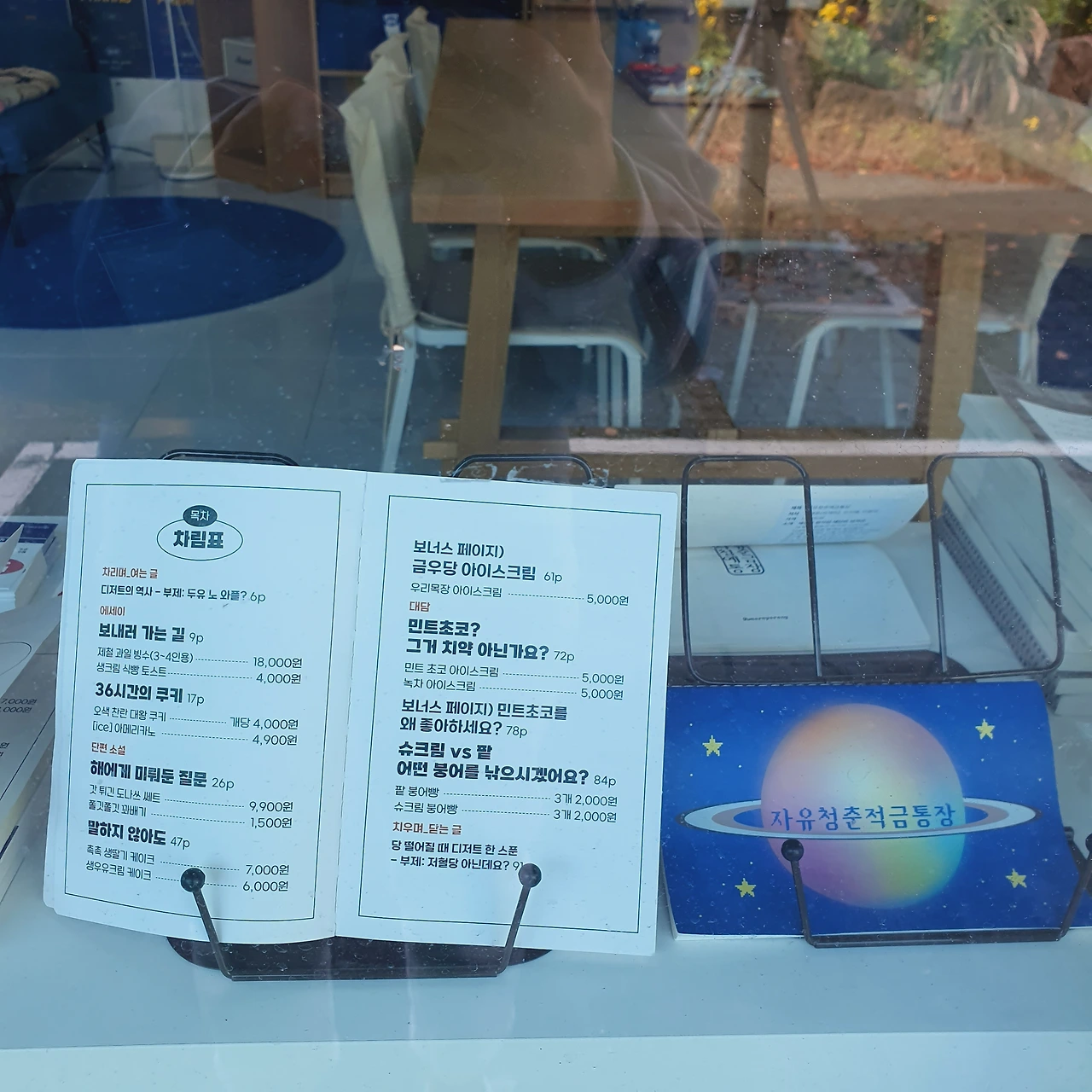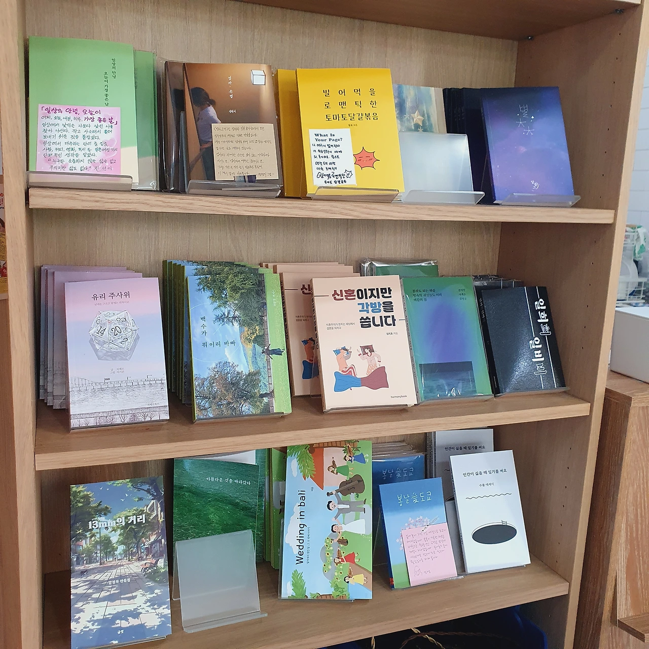 이곳에 있는 대부분의 책들이 독립출판물들이라고 하셨다. 통장, 명함, 메뉴판 등 창의적인 형식의 책들이 새로웠다. 부크크만 알던 나로서는 다양한 독립출판 서적들을 바라보며 경이로움을느꼈다.