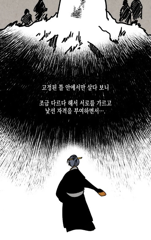 “자극과 긴장, 불편함과 낯섦을 수용하지 못하는 토박이 문화에서, 이방인을 의심스럽고 위험한 존재로 판단하고, 때로 이 의심이 혐오로 자리를 옮기게 될 때, 이방인은 개인으로 인식되는 것이 아니라 ‘특정한 유형의 집단’으로 인식된다. 이들은 집단으로 뭉뚱그려 표상되고, 개개인의 차이와 고유성은 드러나지 않는다.” (김애령, 161쪽)