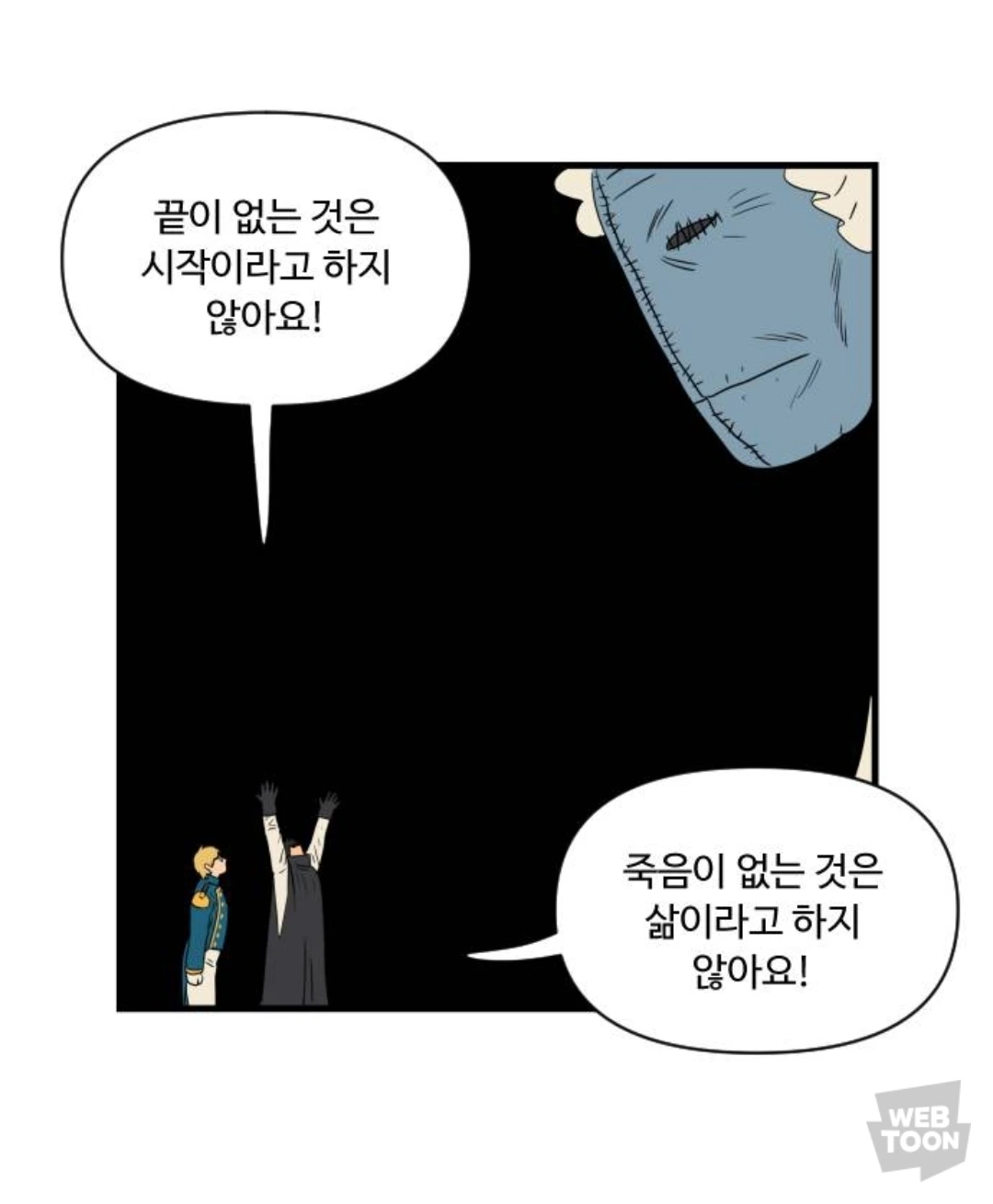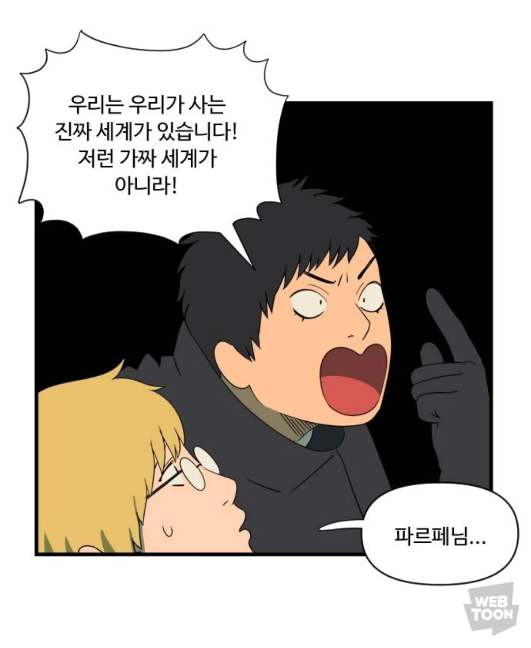 이곳은 고통도 슬픔도 없는 영원한 만족의 세계. 행복에 질리거나 적응하는 감각이 없다. 그저 황홀감뿐인 꿈꾸는 보니의 세계. 죽음 없이 태어나고 끝없이 시작한다. ... 무엇이든 나눌수록 배가 되고 선행은 반드시 보답받는다. 모든 불안과 우울은 입김 한 번에 백 리를 날아가고 건강은 제 발로 걸어 찾아온다. ... 이곳의 존재들은 누구나 그저 '존재'가 된다. (뼈와피와살, <합법해적 파르페> 36화)