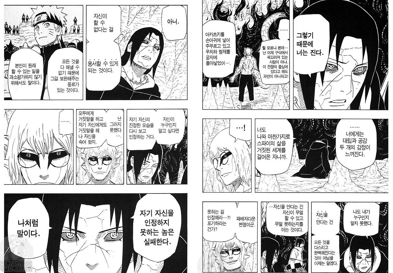나루토 582화 이타치와 카부토의 대화, 읽는 순서는 오른쪽에서 왼쪽으로