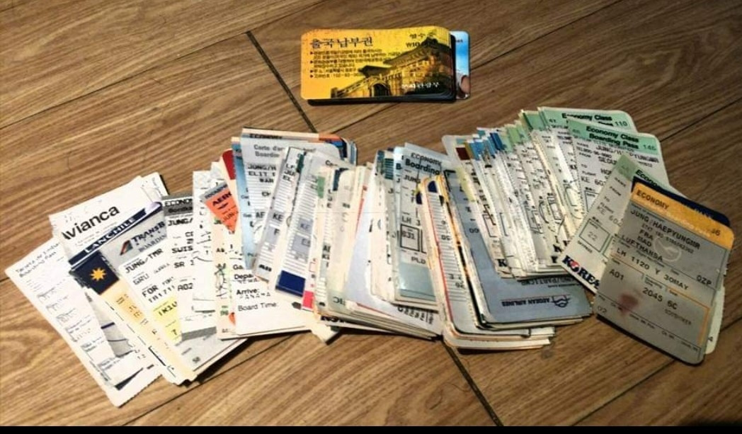 저자의 출장 비행기 탑승 티켓들중 일부