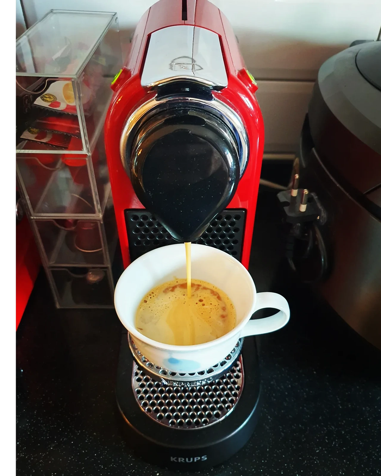 집에선 에스프레소잔 보다 큰잔을 사용해서 좀 넉넉히 뽑는다