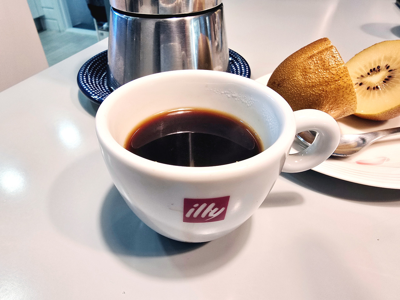 나이를 먹어서 인지 예전에 느꼈던 그 비알레티 커피 맛이 아니다. 그렇다고 대형 에스프레소 머신에서 뿜어져 나오는 크레마가 잔뜩 올라간 매혹적인 커피의 맛도 아니고 커피 필터(거름 종이)에 커피 기름이 걸려져 깔끔하고도 산뜻한 드립커피의 맛도 아니다.