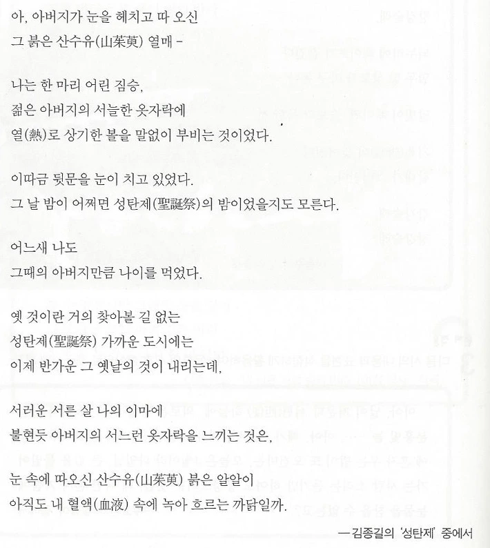 산수유 열매를 구하려는 아버지의 시가 떠올랐다.