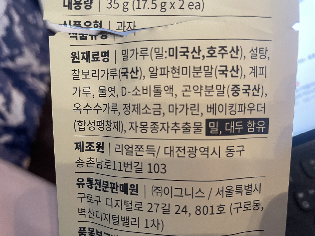 역시 백색 가루가 인격을 완성한다. 심지어 제조원명이 "리얼쫀득"이다. (광고 아님.)