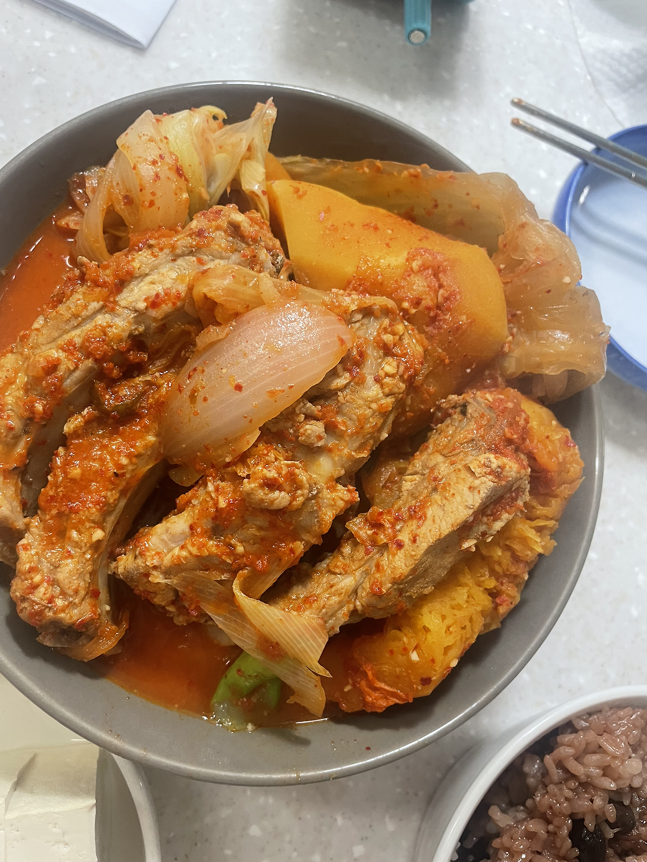 바쁘다는 핑계로 간단한 도시락 말고는 음식을 거의 안 하다가 오랜만에 시도해 본 등갈비 김치찜.