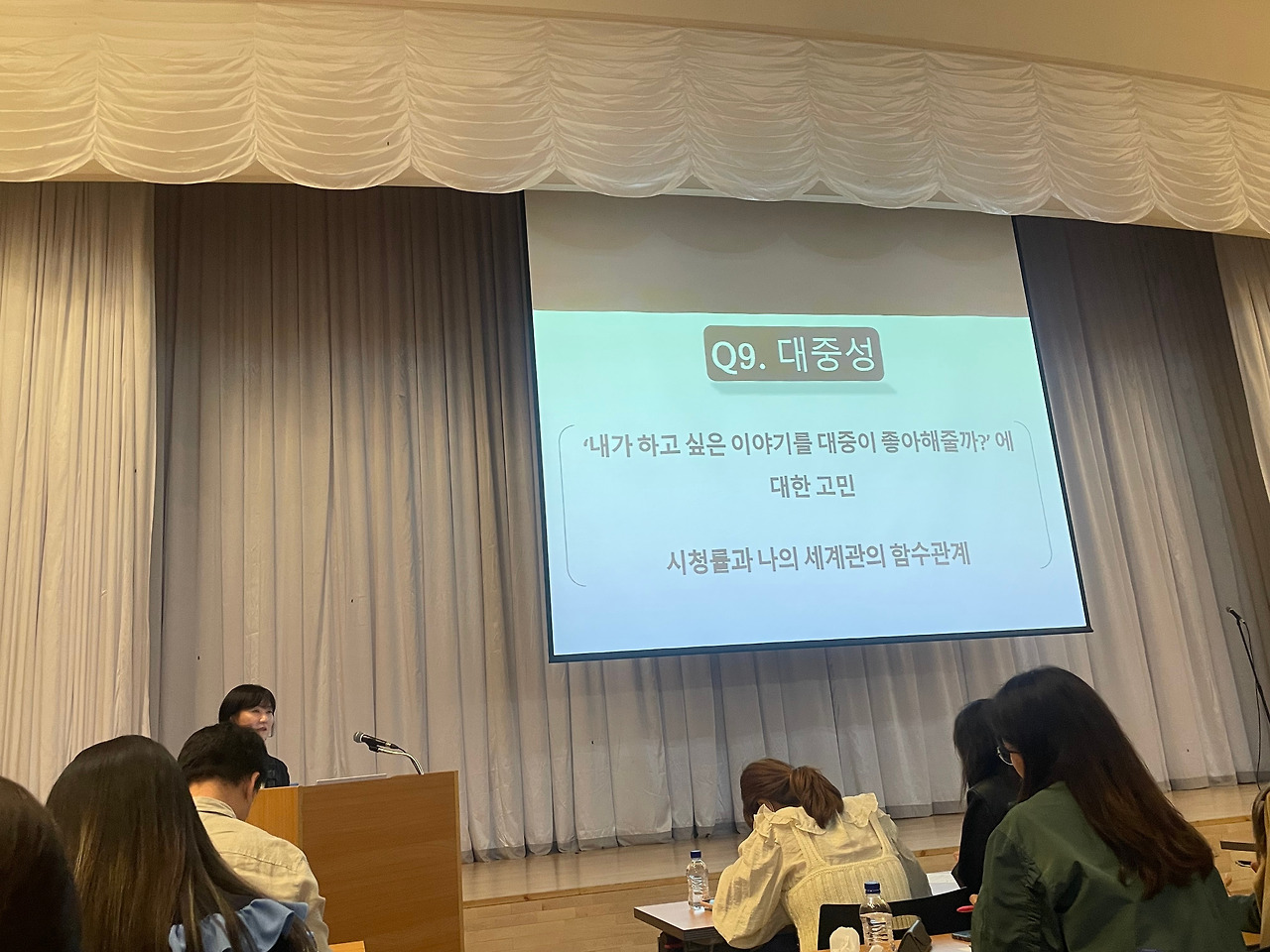 관객들이 피디로 구성되어 있는 강연이라, '기획에 대한 투자를 받는 것에 대한 어려움'에 대한 질문이 많았는데, 핵이 정확하면, 즉 재미있으면 편성이나 투자는 어렵지 않게 받게 되더라라는 반박불가한 정공법으로 깨달음을 주셨다.