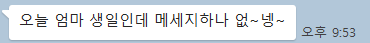 그러던 중 어젯밤에 온 엄마의 카톡.