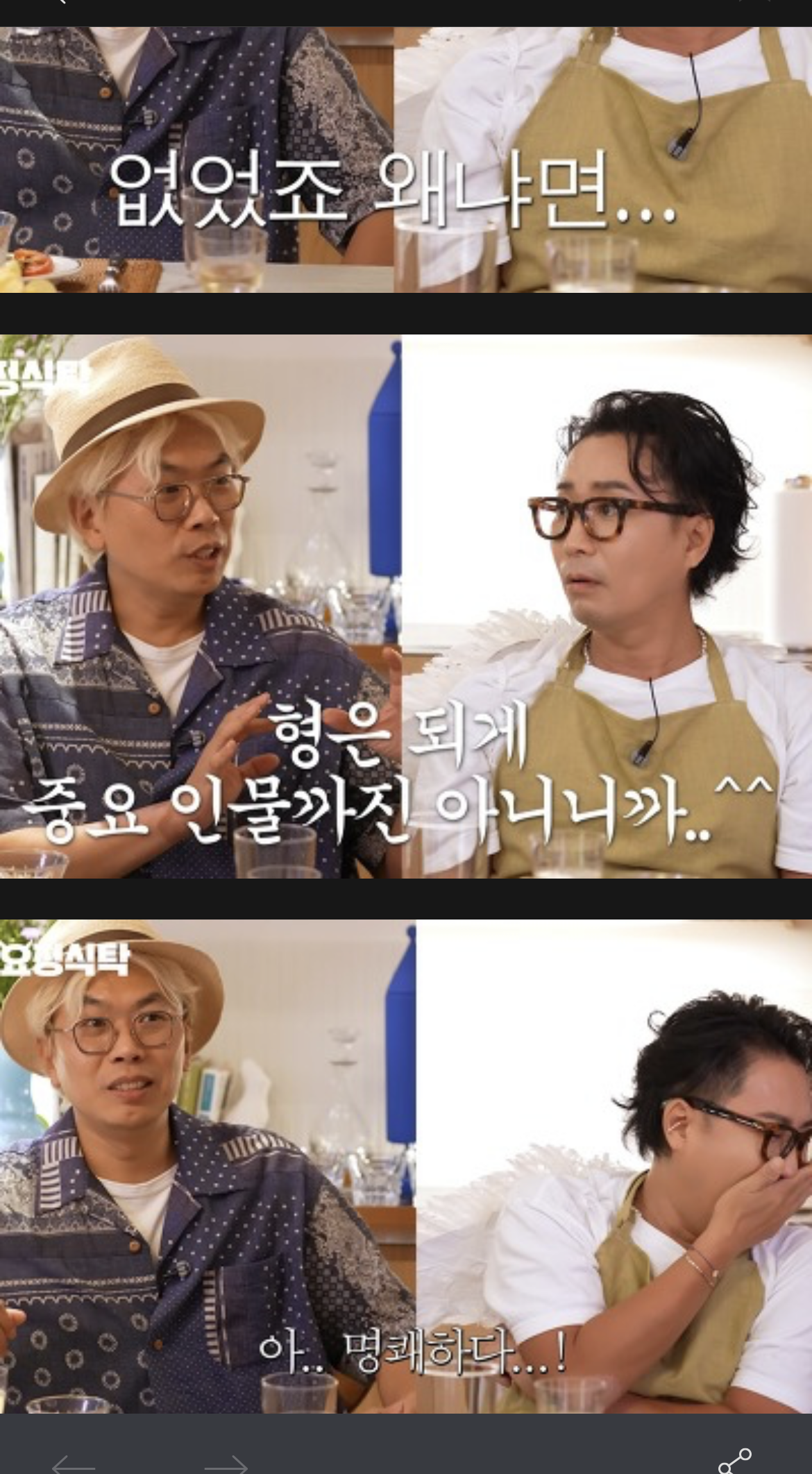 그런데 그냥 장난스럽게 웃는 얼굴로 “형은 뭐 되~~~게 중요하진 않으니까요.“ 이렇게 일정 부분 진심도 전달하면서 위트 있게 말하니 그냥 서로 깔깔 웃고 넘어가게 된 것이다.