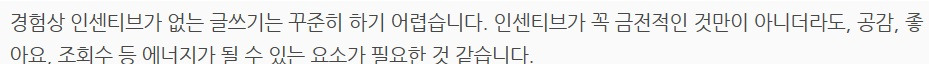 그렇다. 브런치는 인센티브 없는 글쓰기와 같았다.