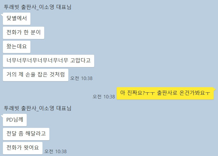 그리고 어제 출판사로 왔다는 서진 팬카페 닻별 회원의 연락.