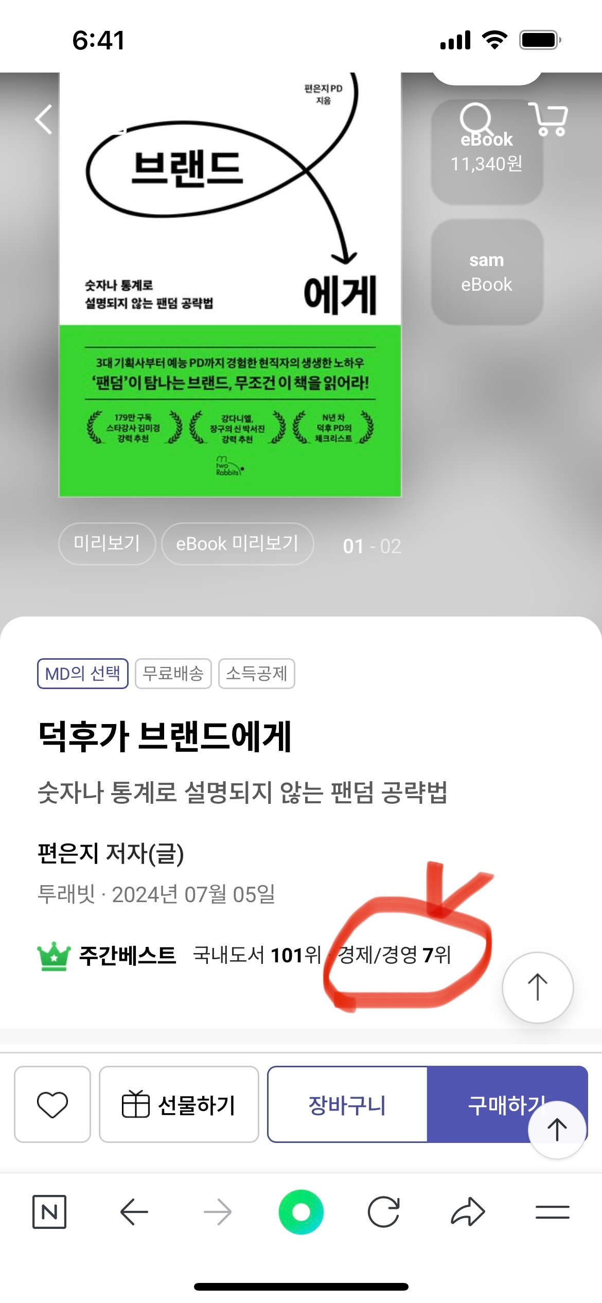 어제까지는 8위였는데 경제/경영 분야 7위로 한 계단 상승했다.