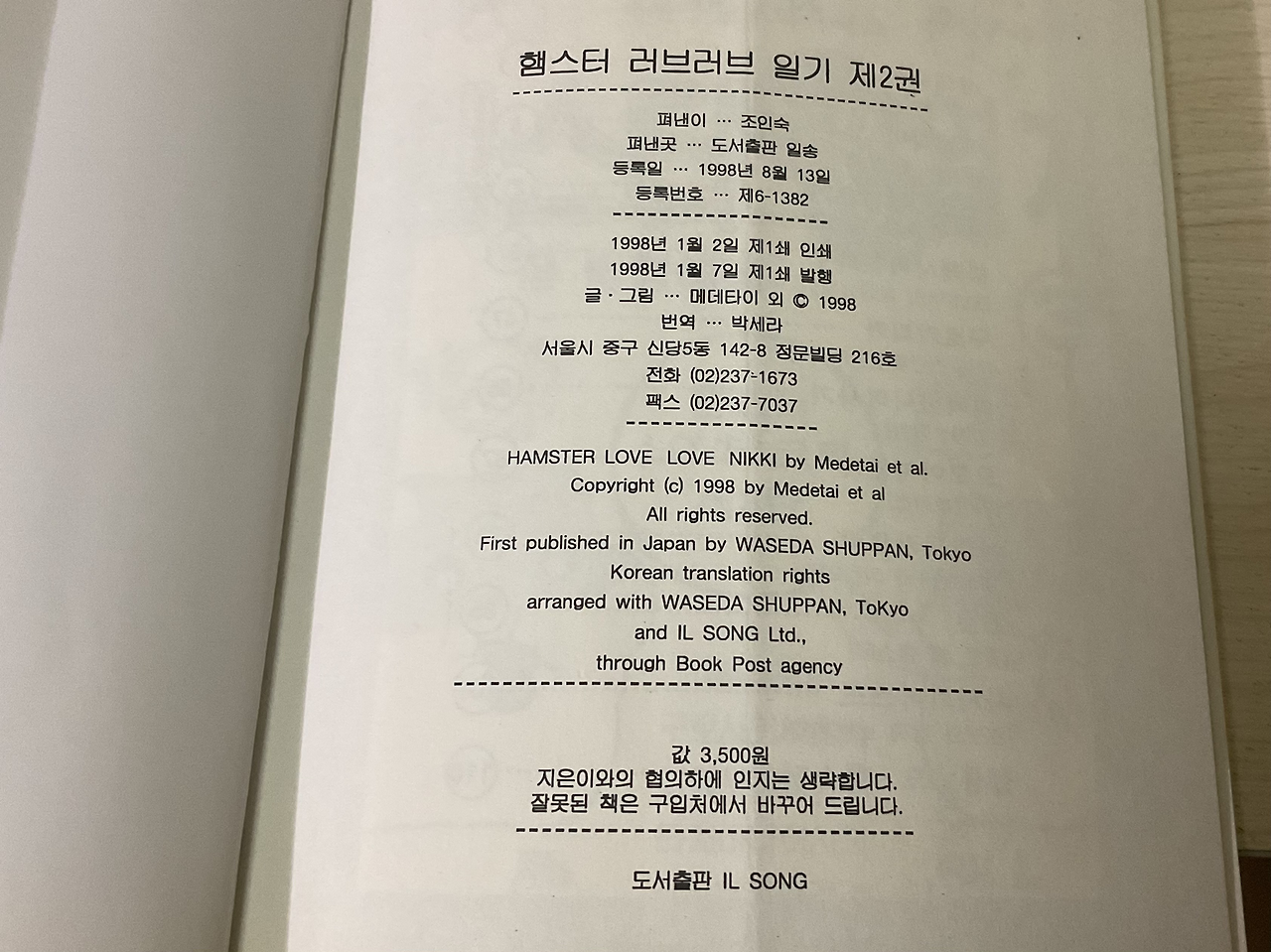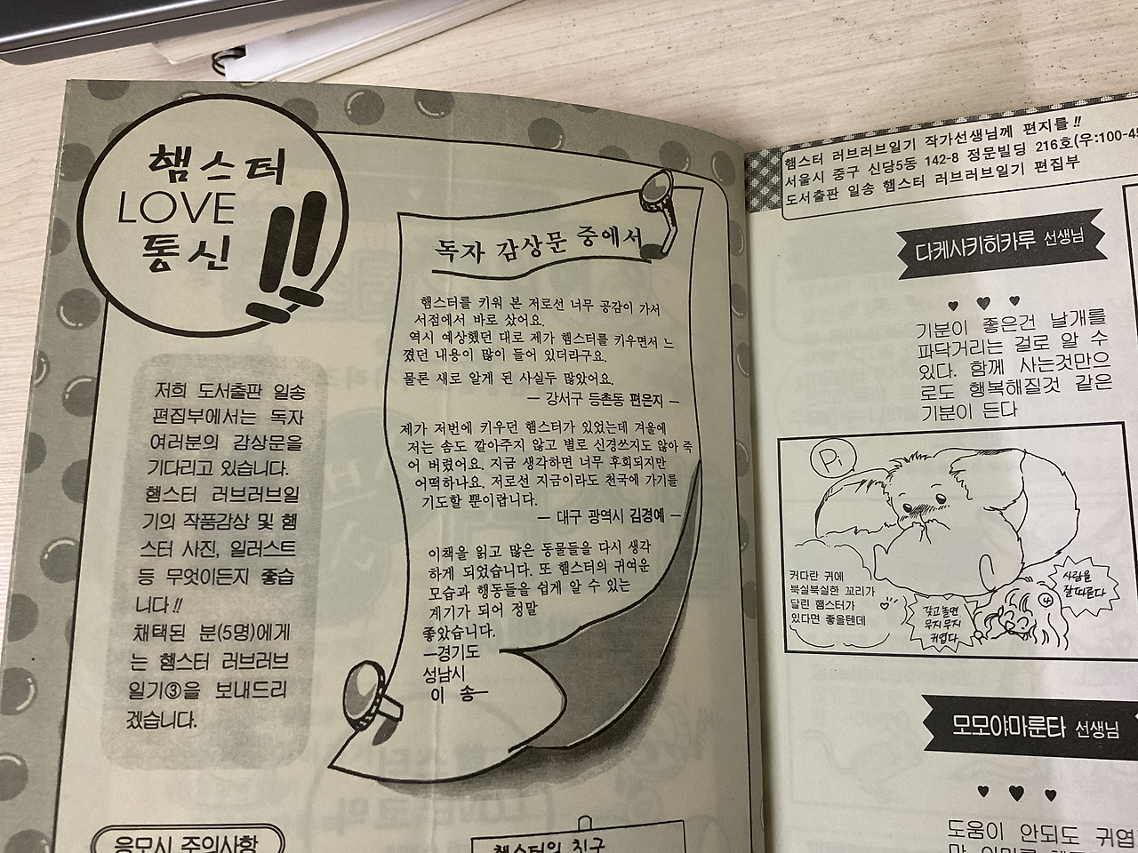 아, 물론 <햄스터 러브러브 일기> 2권도 가장 먼저 받아보는 특전도 얻었다.