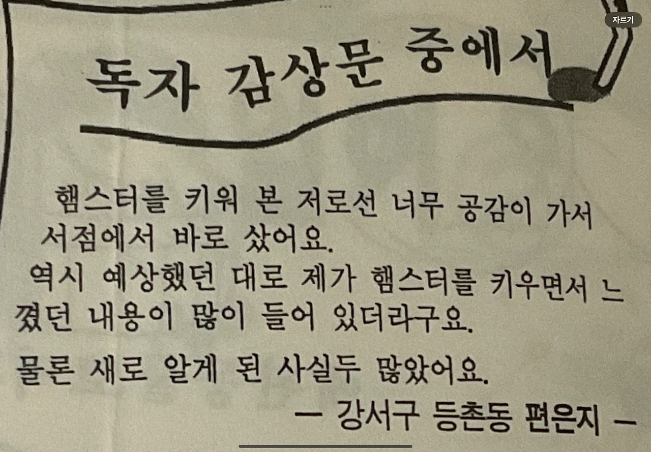 <햄스터 러브러브 일기>는 이 두 가지를 모두 충족시켜 주는 어린 나에게 소중하고 반가운 책이었다.