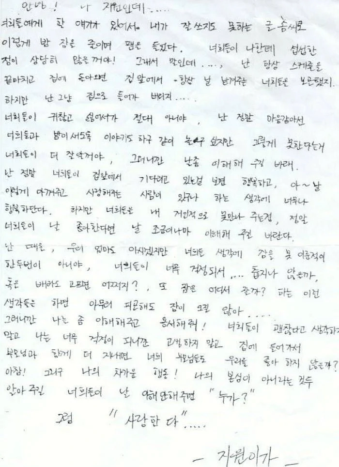 SNS 따위 없는 PC통신 시절이었지만, 대한민국에서 가장 바쁜 아이돌 팀의 리더가 집 앞에 붙여둔 편지는 널리 널리 전파됐다.