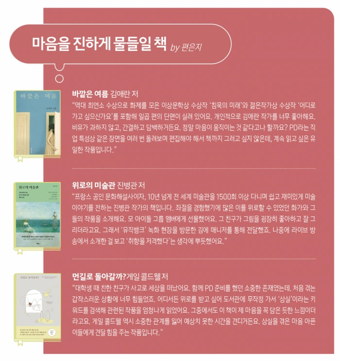 “아이돌 그룹 젝스키스의 ‘극성팬’이었어요. 가족끼리 외식하러 가선 갈비 굽는 아빠 맞은편에서 미간을 찌푸리고 오빠들이 출연하는 라디오 방송을 녹음한 적도 있죠. 아빠가 ‘벌써 저러면 커서 뭐가 되겠냐’고 혀를 끌끌 차셨으니, 완전 ‘불량 초딩’이었네요. 덕질에 진심이라 그 마음이 얼마나 소중한지 알기에 팬이라는 존재 자체를 좋아해요. 팬의 팬이랄까요? 그들을 위한 프로그램을 연출하고, 책까지 출간하게 돼 너무 뿌듯합니다.”