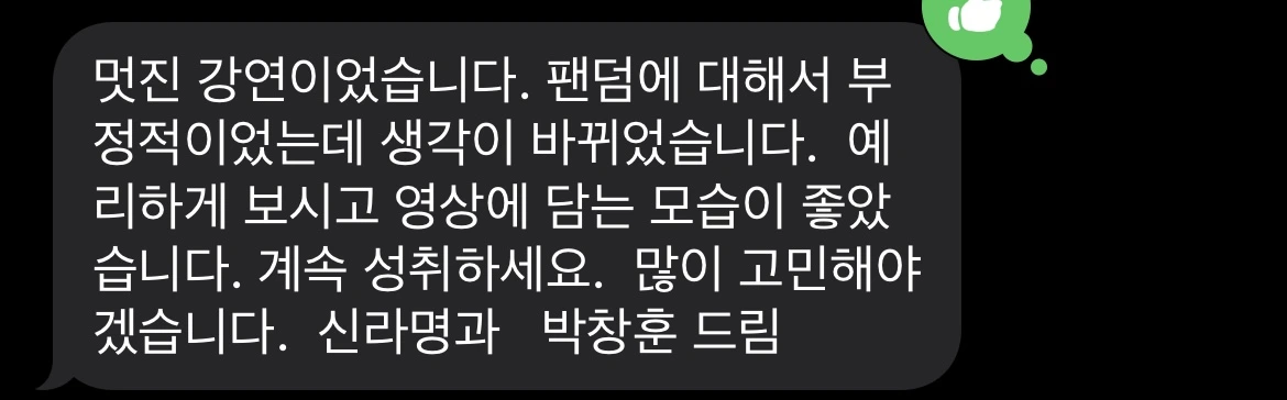 실제로 기업인을 대상으로 한 강연에서 팬에 대한 부정적 편견이 바꼈다는 피드백은 나에게도 큰 울림을 주었다.