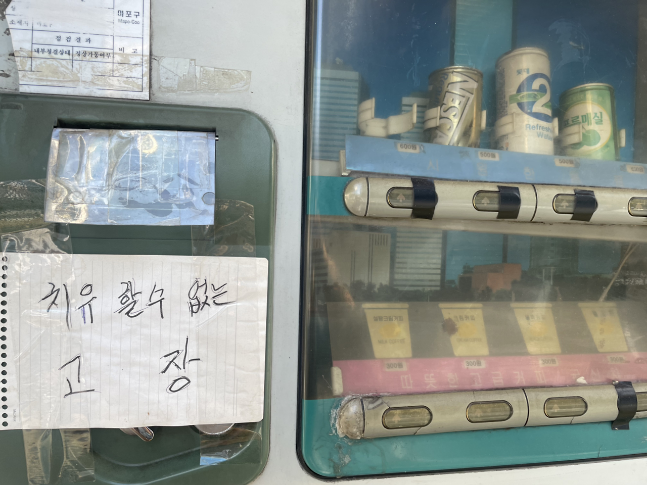 완성된 그림을 들고 화실을 나서는데 1층에 있던 자판기 문구가 갬성을 더 해주었다. 뭔가 사람들의 반복되는 질문에 성질이 나서 노트를 쫙 뜯어 볼펜으로 쓰고 매직으로 덧대어 '다시는 질문하지 말라'는 듯 거칠게 써붙여놓은 종이인데, 그 문장이 너무 감성적이었다.