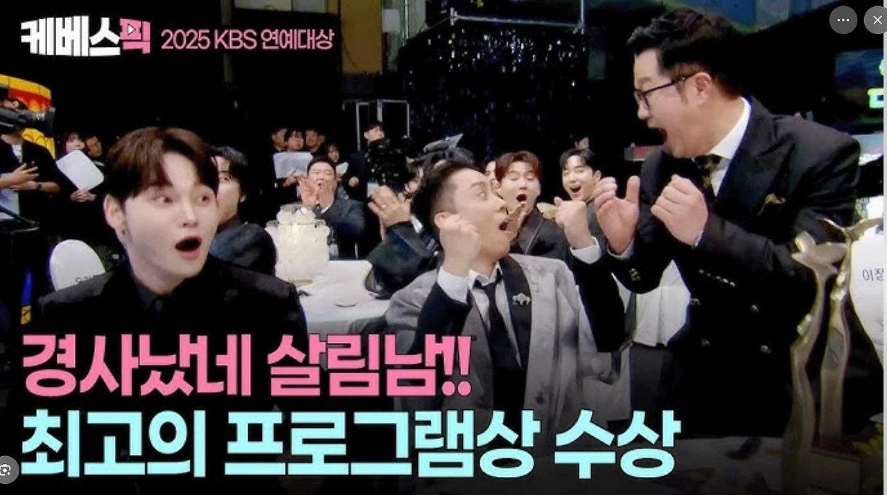 한 해를 마무리하는 KBS 연예대상에서 내가 연출 중인 살림남이 시청자가 뽑은 최고의 프로그램상을 수상했다.