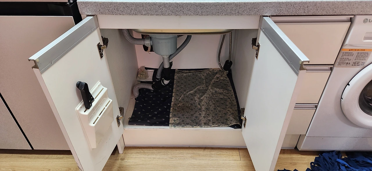 평화로웠던 주말 토요일 오후, 늦은 점심을 먹기 위해 겨우 몸을 일으켜 나온 거실. 나의 발에 '찰랑'하니 집과는 어울리지 않는 물 웅덩이가 하나 생겨나 있었다. 정확히 말해서 그것은 작은 웅덩이가 아닌, 점점 몸집을 불려 나가는, 어디선가 물이 새는 듯한 모양새를 하고 있었기에 나는 돌아가고 있던 세탁기의 문을 확인하였고, 그것은 세탁기가 아닌 싱크대 밑에서 흘러나오는 것이라는 것을 단숨에 알아챘다.