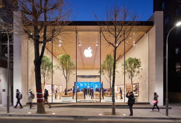 한국의 애플스토어 경우를 보면, 애플 스토어 외관의 주된 색감은 '은색'입니다.