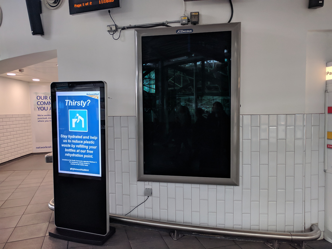 1번 옥스퍼드 역 아마존 라커, 2~4번 리버풀 라임 스트리트 역, 6번 맨체스터 피카딜리 역 식수대 안내. 사진=딱정벌레 런던, 브라이튼, 옥스퍼드, 리버풀, 맨체스터, 에든버러 모두 기차를 이용했다. 런던에서는 빅토리아 역과 패딩턴 역에서 기차를 탔다. 브라이튼과 옥스퍼드가 비교적 작은 도시였던 터라 역도 작았다. 그 외 지역은 모두 대도시이고 역 크기도 어마어마했다. 우리나라 철도에서는 객차 안에서 먹거리를 팔던 이들이 없어졌지만 영국 철도에서는 아직 그런 사람들이 있었다. 예전 KTX처럼 커피 등 음료와 샌드위치를 팔았다. 사 먹지는 않았다. 맛있어 보이지 않아서라기보다 조식을 늘 든든히 먹었기 때문에 당기지 않았다.