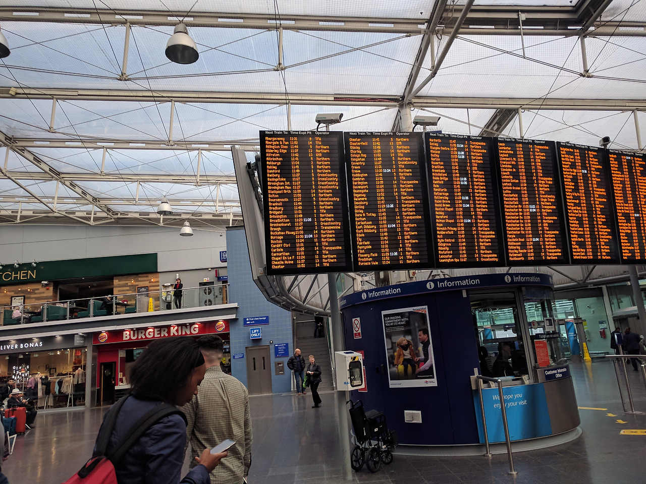 리버풀 라임 스트리트 역에는 새로운 소매 점포 입점 공사를 한다고 뭘 둘러쳤는데 색깔이 상큼해서 마음에 들었다. 지금쯤 뭐가 들어와 있을까? 맨체스터 피카딜리 역에는 산업혁명 발상지였던 맨체스터 역사를 기념하듯 노동자들 동상이 세워져 있었다. 또 플라스틱 쓰레기를 줄이기 위해 식수대 사용을 권장하는 문구도 눈에 띄였다. 과거 명성에 비하면 지금은 맨체스터가 많이 죽은(?) 느낌도 없잖아 있지만. 그런 역사 때문인지 마음이 갔다. 그걸 기념하는 박물관도 좋았고. 생각보다 도회적 분위기라서 친숙했다. 아쉬운 점은 예쁜 맨체스터 스타벅스 시티 머그를 깨 먹은 거. 기차 밖 풍경은 좋았다. 북쪽으로 올라갈수록 더 멋졌다.