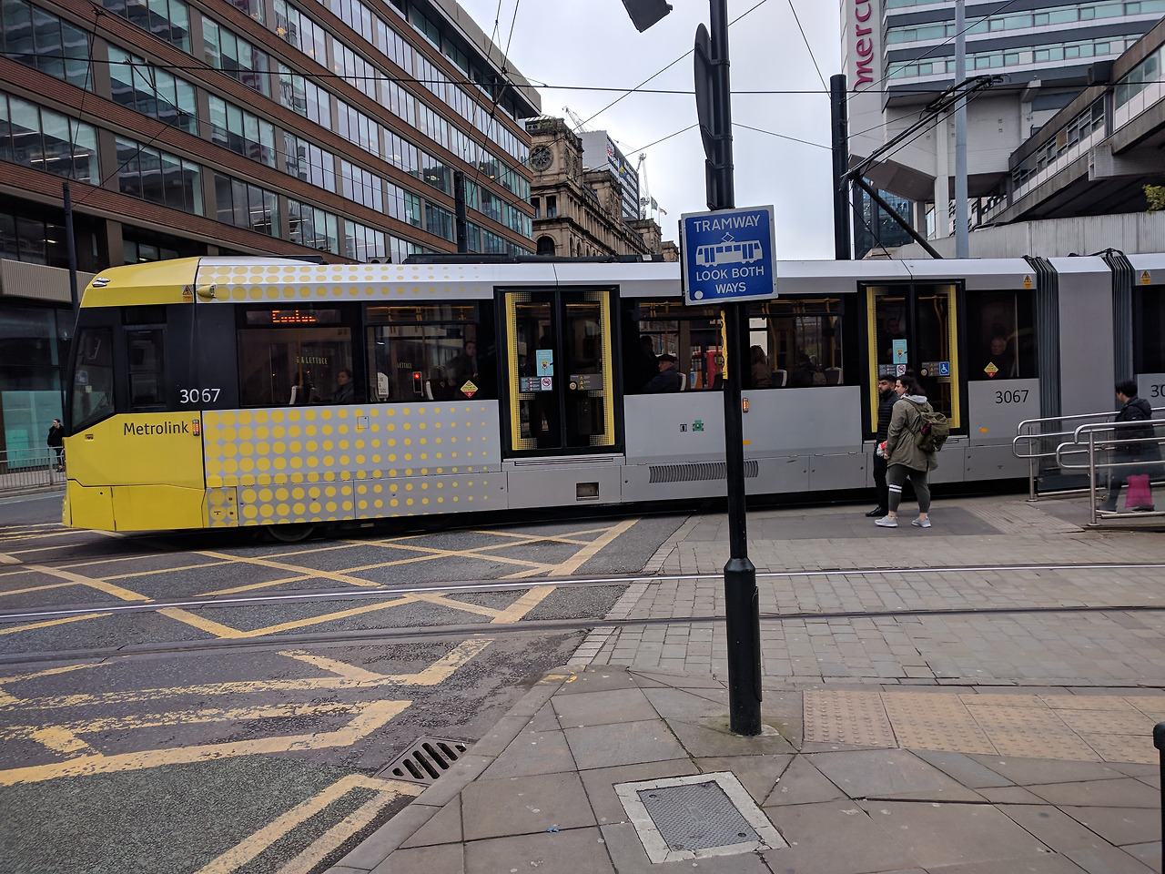 맨체스터에서는 트램이 지역 상징과도 같았다. 스타벅스 시티 머그에도 트램이 그려져 있기도 하고. 맨체스터 피카딜리역에서 나와서 숙소까지 걸어가는데 눈앞에 펼쳐진 풍경이 트램이었다. 색도 예뻤다. 하얗고 노랗고. 주변에서 트램 정거장도 흔히 볼 수 있었다. 차가 지나는 도로와 같은 공간을 공유해선지 트램이 무척 가까운 느낌이 들었다. 맨체스터에선 미디어시티 UK라는(우리나라로 치면 상암 디지털 미디어 단지) 곳에서 트램을 탔다. 트램에 타기 전 리더기에 카드나 승차권을 인식하는데 비자카드나 마스터카드, 마에스트로 카드로도 이용할 수 있었다. 내릴 때도 여기에 카드를 읽히고. 성인 싱글 티켓 가격은 2.8파운드(한화 4300원).