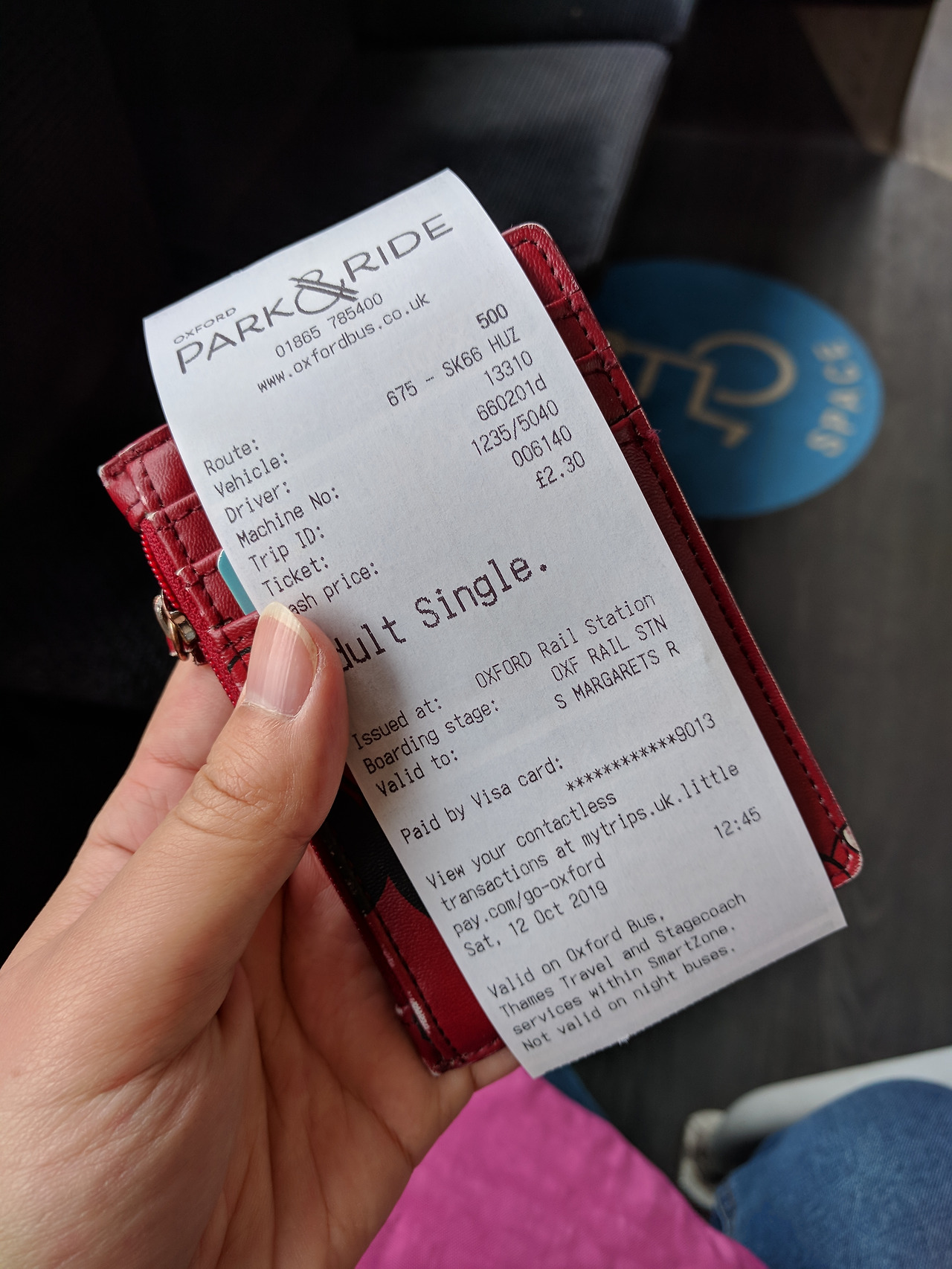 1번 옥스퍼드 2층 버스, 2번 옥스퍼드 역 버스 정류장, 3번 버스 싱글 티켓, 4번 버스 티켓 버리는 곳, 5번 리버풀 버스 정류장, 6번 안필드 버스 안내. 사진=딱정벌레 버스는 어느 지역이든 공통으로 다 이용했다. 오이스터 카드는 런던 교통카드라서 다른 지역에서 이용하지는 못했다. 버스를 자주, 많이 타는 건 아니라서 따로 현지 교통카드나 다른 전용 결제수단을 이용하지 않고 그냥 한번 타는 싱글 티켓을 따로 샀다. 앞서 이야기했듯 영국 대중교통 요금은 비쌌다. 옥스퍼드에서 숙소로 향하는 싱글 티켓을 샀는데 2.3파운드(한화 3500원). 티켓은 기사에게서 바로 살 수 있었다. 버스 안에는 사용 티켓을 버릴 수 있는 전용 휴지통(?)도 있었다.