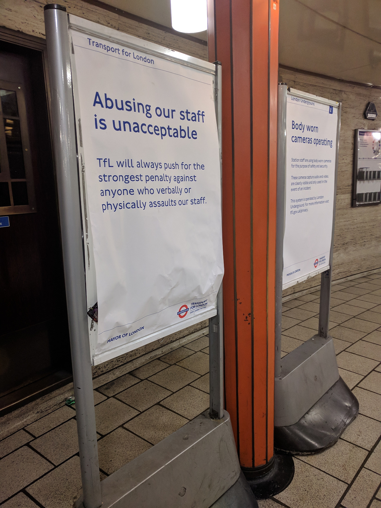 런던 지하철 풍경은 다른 글에서도 언급했던 터라 자세히 할 이야기는 없다. 다만 오래돼서 그런지 객차가 좁았다. 양옆에 승객이 앉으면 통로에 사람 하나 겨우 서있을 공간 정도만 남았다. 객차 천장 쪽이 타원형처럼 돼있어서 예뻤다. 특히 퇴근 시간에는 오후 4시에도 늘 사람들로 가득 차 있고. 토요일 오전도 복잡했다. 흥미로웠던 장면이 있다면 피카딜리 역에서 BTS 지민의 생일 축하 광고가 걸려 있었다는 것. 여기도 역무원을 괴롭히는 진상 승객이 있는지 경고문이 붙어 있었다(Abusing our staff is unacceptable).