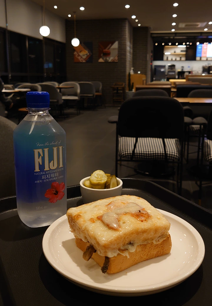 저녁으로 먹은 투썸플레이스 피자 토스트. 다음엔 단백질을 우선 먹기로 한다. 사진=딱정벌레