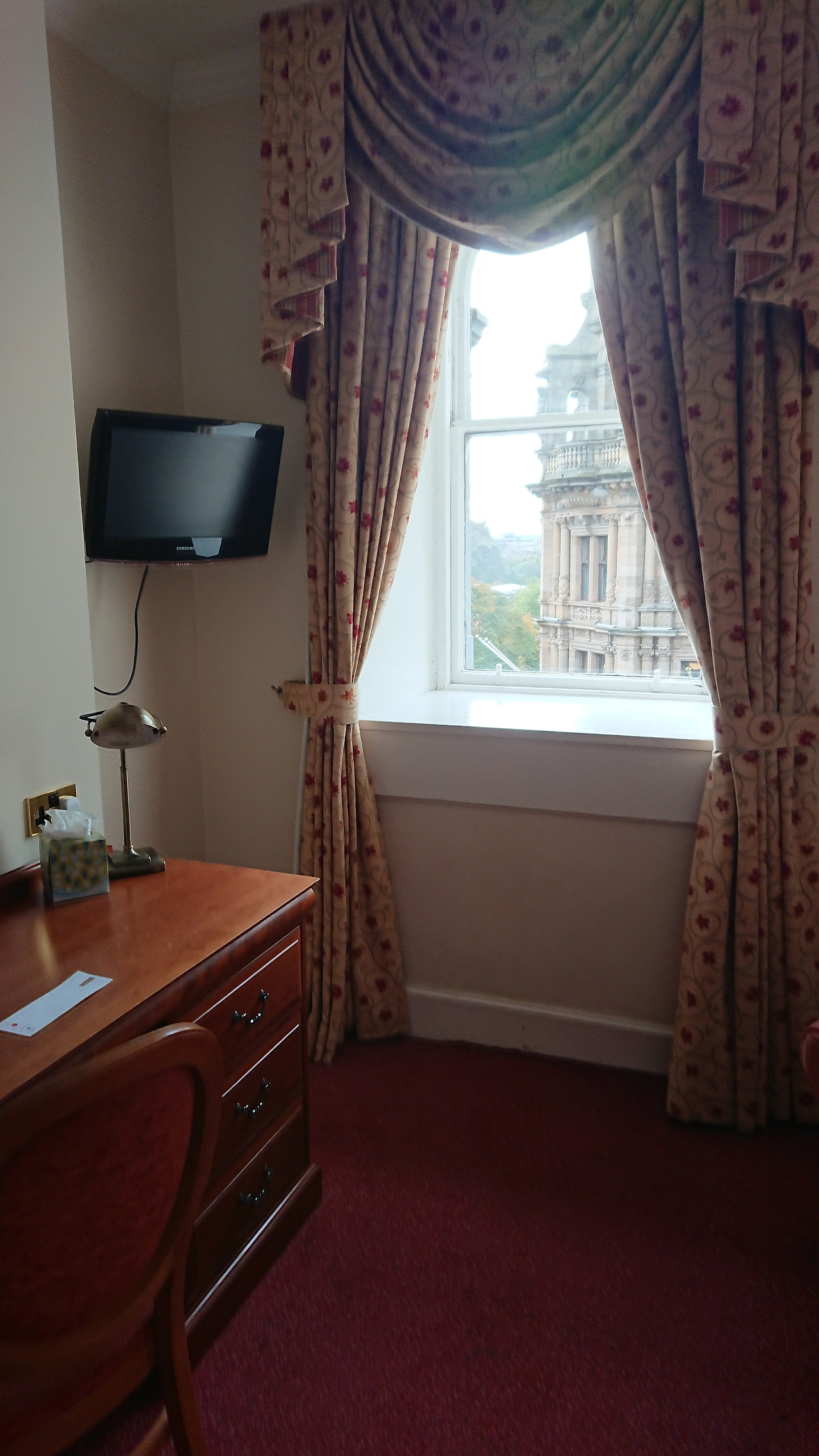 에든버러 신 시가지에 있으며 스콧 기념탑이나 칼턴 힐, 주요 관광지와 가깝다. 에든버러 성이나 로열 마일이 있는 구 시가지도 걸어서 갈 수 있다. 주변에 식당이나 H&M 같은 옷 가게도 있고. 갈만한 곳은 많지만 날이 저물면 모두 문을 닫는다. 그래도 딜리버루로 배달 음식을 시켜먹을 수 있으니 괜찮다. 숙소는 좀 오래된 느낌은 있지만 에든버러 도시 빨인지 모르겠는데 빈티지한 멋은 있었다. 커튼이나 조명이 고풍스럽기도 하고. 창이 크고 올라가 앉을 수 있는데 운치 있었다. 잠도 잘 잤다. 조식도 먹거리가 다양했고. 마지막 날 일찍 공항에 가야 해서 그날 조식을 건너뛴 게 원통할(?) 정도였다. 에든버러에 다시 간다면 여기에 또 묵을 의향이 있다.