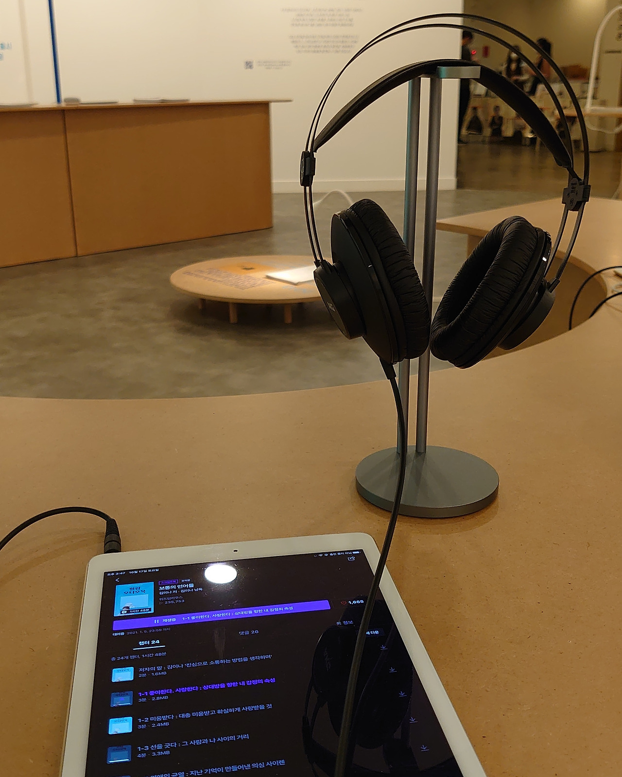 사진=딱정벌레셋째, 체험 콘텐츠가 좋았다. 여기서 말하는 체험 콘텐츠란 앉아서 헤드폰을 끼고 오디오북을 듣거나, 연도별 출판업계 사정을 담은 종이를 모아서 바인딩 북을 만드는 거. 소소한 체험거리지만 재미는 있었다. 오디오북은 편하게 앉아서 듣다 보니 나른하기도 하고, 몸도 이완돼서 좋았다. 문득 '오디오북 듣는 카페가 있으면 좋겠다'는 생각도 들고. 그럴 필요는 없는데. 본인 헤드폰 끼고 카페 가서 듣거나, 집에서 편하게 앉아서 듣고 말지. 편지 쓰는 공간까지 요즘 운영하는 걸 보면 오디오북도 안될 건 없을 듯하다. 바디프렌드 안마 카페처럼?