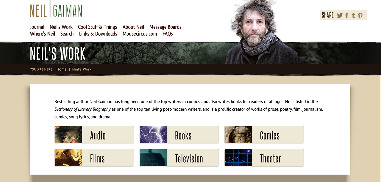 사진=닐 게이먼 홈페이지소설가이자 영화 시나리오 작가이자 만화가인 닐 게이먼도 미술에 관한 뉴스 기사와 수필에서 가장 어린 독자가 읽을 수 있는 것뿐 아니라 주류 성인 독자를 몰입시키는 심리학적으로 복잡한 정체성을 살펴보는 이야기 등 모든 장르의 소설에 이르기까지 폭넓은 작품을 내놓았다. 조던 필은 만화 창작자는 아니지만 시나리오를 쓰고 감독도 한 첫 영화인 '겟 아웃'이 매우 독특하다는 평을 받으면서 성공했는데, 공포 영화에서 적절한 시점에 정보를 드러내는 솜씨를 코미디, 대본을 쓸 때 터득했다고 한다. 테일러와 그레베는 이렇게 결론지었다. '전문화는 창작 활동에 큰 지장을 줄 수 있다.'
