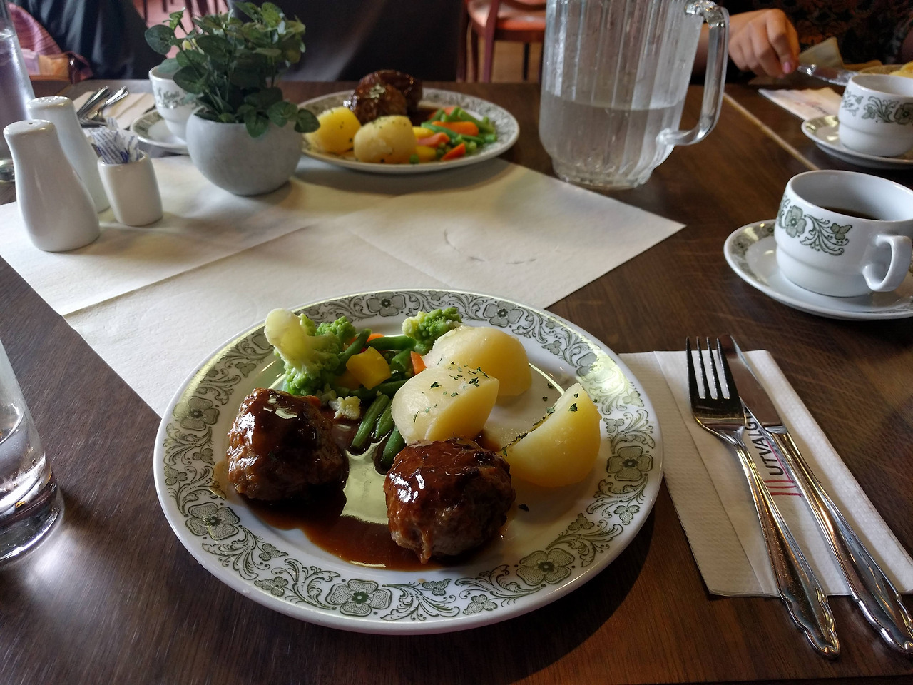 오슬로를 떠나니 곳곳에 산, 나무, 계곡, 호수, 피오르드 등 자연 풍경뿐이었다. 산과 물은 실컷 구경했다. 근데 그게 별로 지루하지 않았다. 평소에 많이 못 보던 거라서 그럴 수도. 북유럽에 온 진정한 목적을 비로소 달성하는 기분이 들어서 좋았다. 중간에 식당에 들러서 점심을 먹었다. 여기서는 미트볼에 감자를 주로 먹는다고 해서 여행할 때는 그 메뉴를 많이 먹었다. 자유여행이면 그래도 다른 걸 찾아먹었겠지만 북유럽 여행은 패키지로 갔기 때문에. 후식으로 나온 아이스크림이 고급스럽고 맛있었다. 휴게소에서 사과를 사서 차에 탔다.