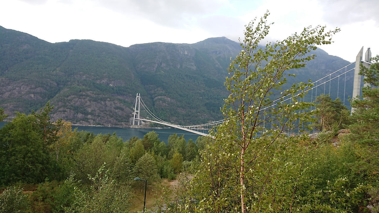 오랫동안 이 풍경을 보고 싶었다. 그러나 갈길이 머니 산에서 내려와서는 하당에르 다리를 보러 갔다. 근처에는 국립공원이 있고. 이 다리가 하당에르 피오르드를 관통한다는데 길이는 정확히 모르겠다. 하당에르 피오르드가 200km라던데 다리도 그쯤 되려나. 먼발치서 다리를 바라보고 사진에 담았다. 다리 전체가 골고루 찍히지는 않아서 아쉽다. 영화 '겨울왕국'에서 배경으로 참고한 나라가 여러 곳인데 노르웨이도 그중 하나다. 노르웨이 특정 지역 한 곳만 아니라 여러 곳이 배경으로 활용했다고.