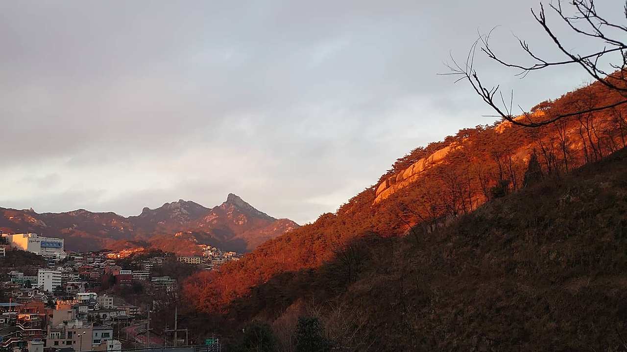 인적이 드물어 소름이 끼쳤던(?) 그쪽 산에도 볼거리는 있었다. 역시 해지기 직전이었고 거기서 햇볕이 북악산을 물들인 광경을 봤다. 그건 보기 좋았다. 딱 거기 위치에서만 볼 수 있는 모습이다 싶고. 강북이 좋은 이유는 여러 가지인데 산이 많고 산에서 마을을 내려다볼 때 그 풍경이 마음에 든다. 중요한 곳이 강북에 많다는 것도 한때는 좋았다. 기자를 꿈꾸던 시절에는 광화문에서 일하고 싶었으니까? 일터가 광화문에서, 강북에서 멀어질수록 아쉽다는 생각이 든 적도 있다. 강렬한 기억이 집약돼 있어서 그런 듯도.