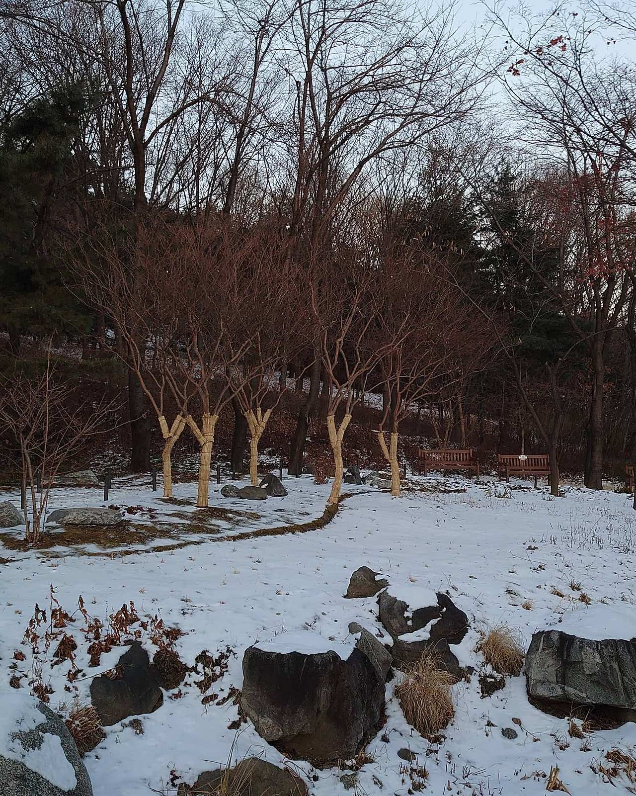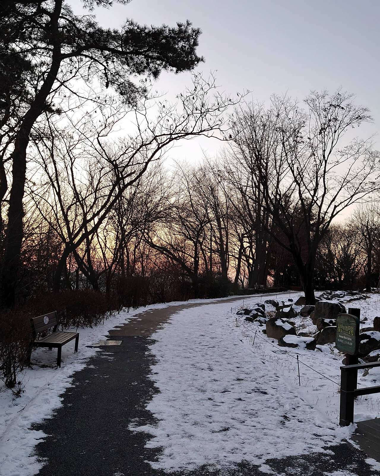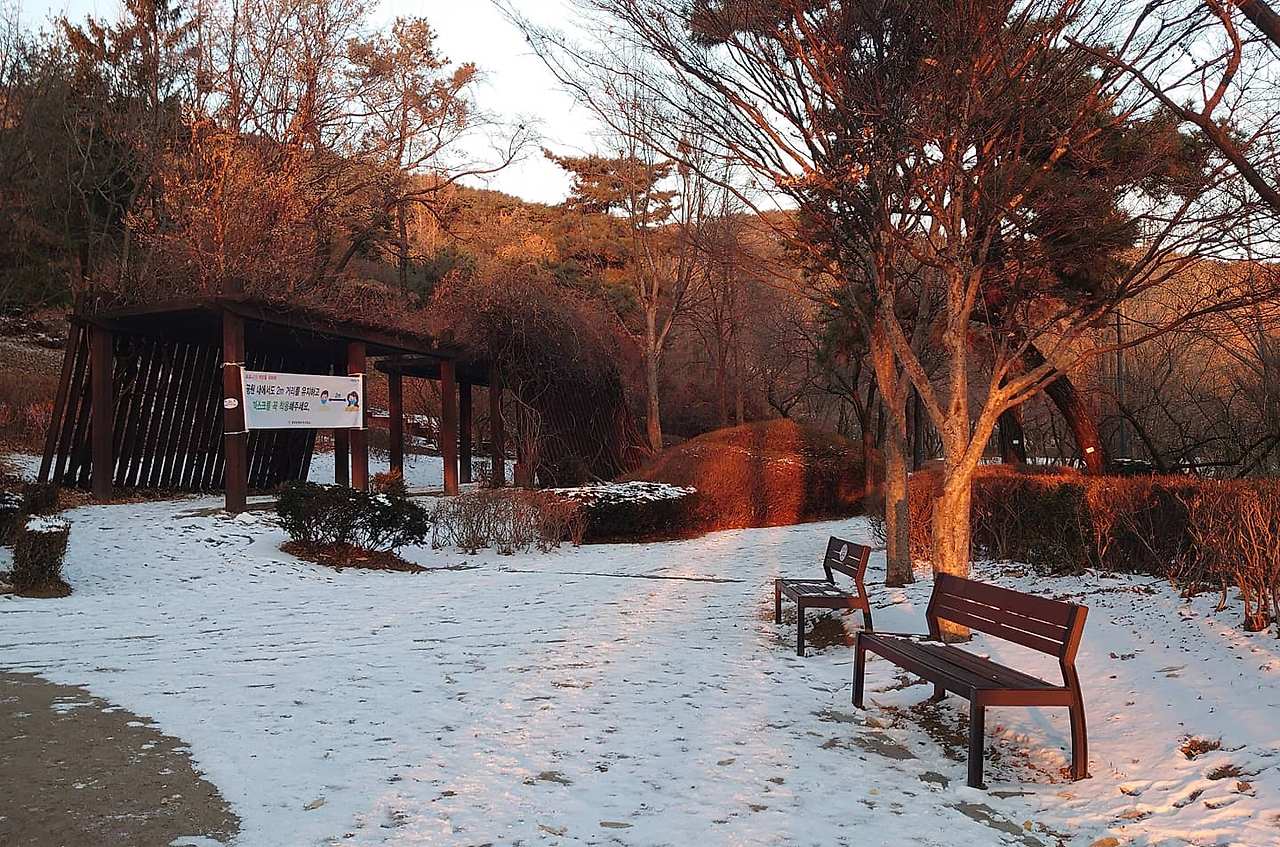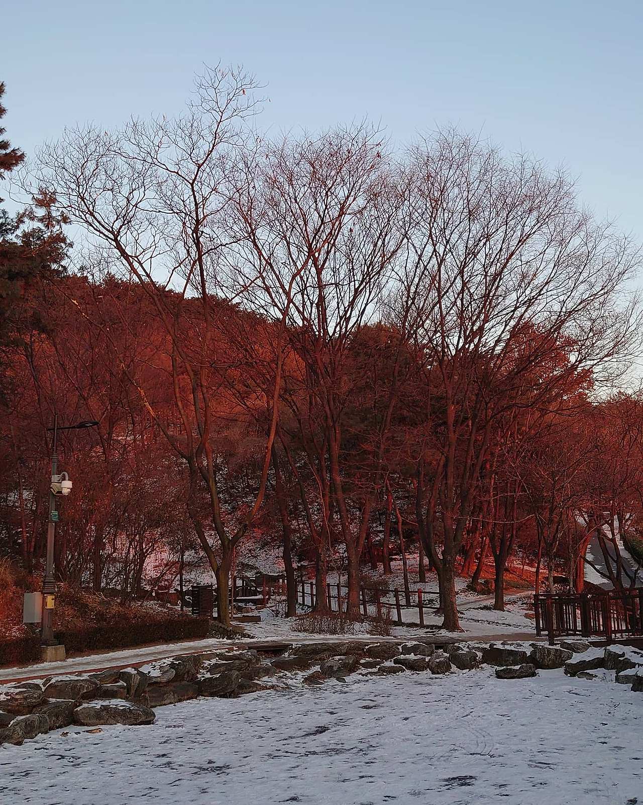 산이라서 그런지 1월 초만 해도 눈이 녹지 않고 많이 남아 있었다. 사진을 안 찍은 지도 오래됐고. 출사를 겸해서 갔는데 결과물이 그럭저럭 나쁘지 않았다. 푸르스름하게 나오긴 했지만. 그래서 더 차가운 느낌이 들었지만. 겨울이라서 구경할 식물은 하나도 없는데 새하얀 눈밭을 배경으로 빨간 앵두가 고고히 피어 있는데 제법 예뻤다. 딱 해지기 직전에 가서 경치가 더 좋았다. 하늘빛도 다양하고. 그랜드 하얏트 호텔에 비친 노을도 아름다웠다. 사진을 많이 찍었는데 멋있게(?) 나와서 그랜드 하얏트 호텔에 보내주고 싶었다.