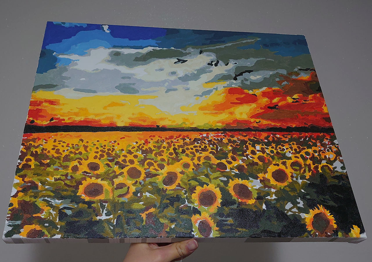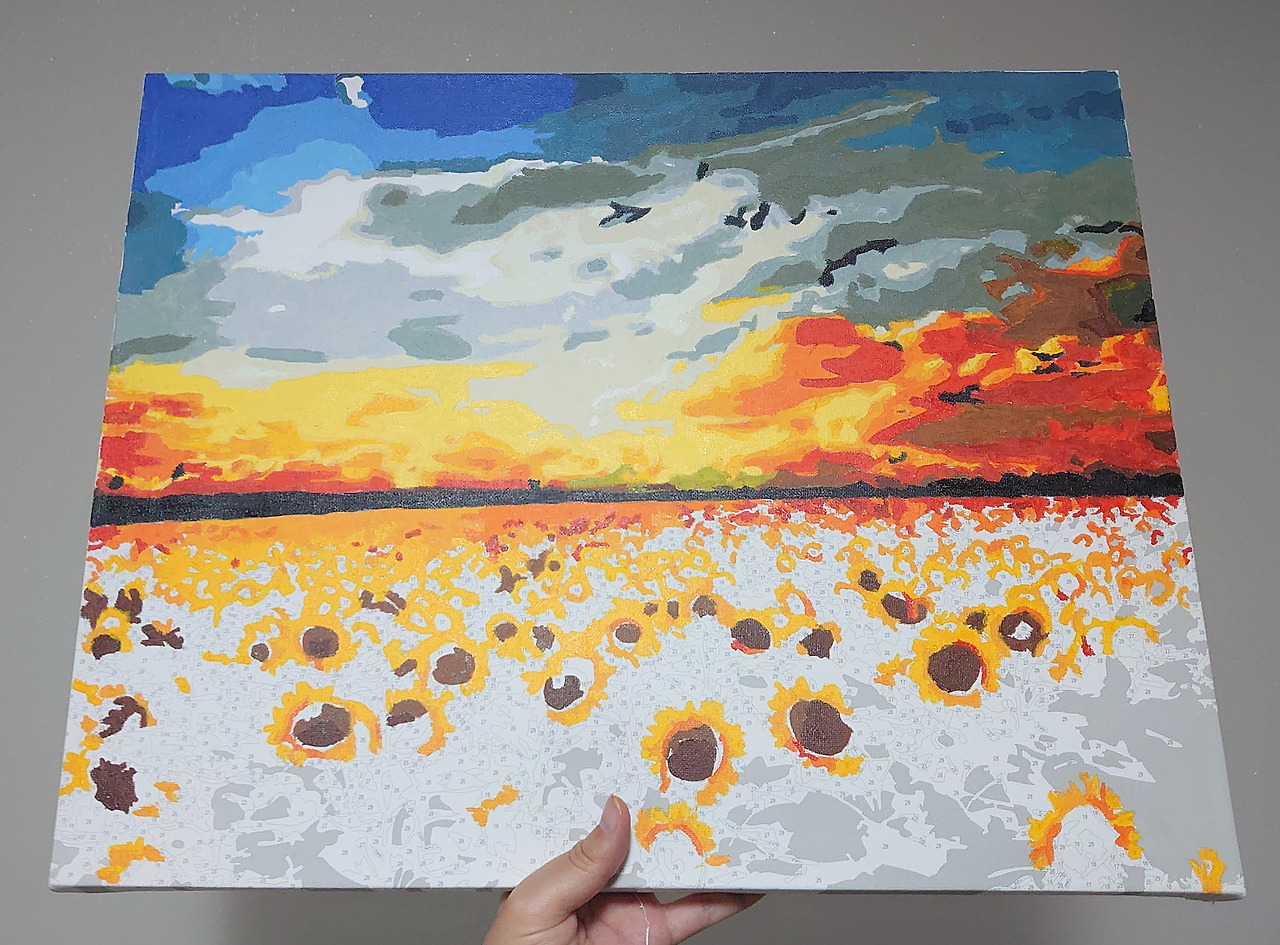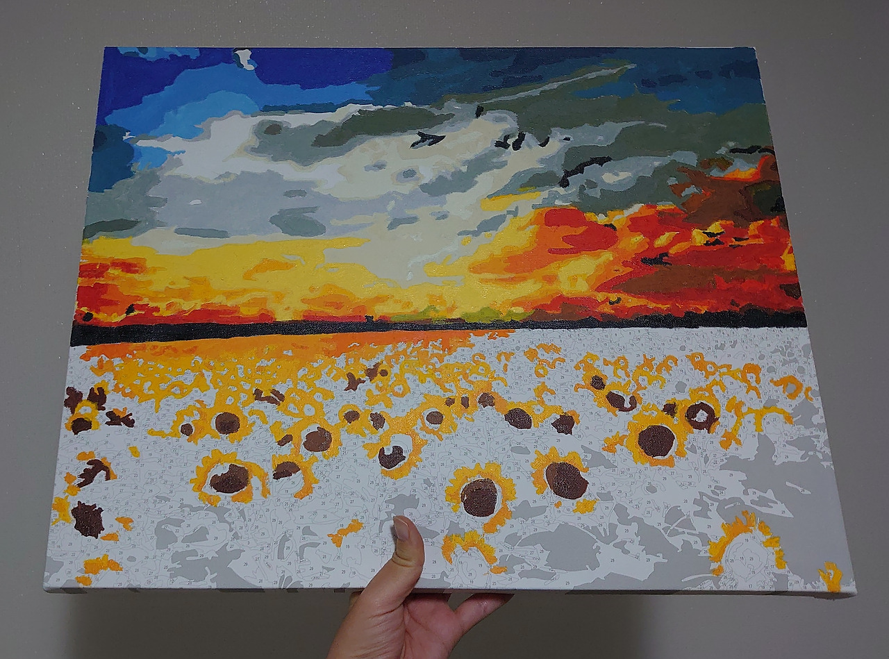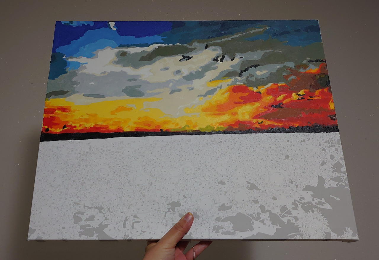 피포 페인팅은 자가격리 아이템으로 꼽히기도 한다. 요즘 트렌드는 명화 그리기도 아니고 도자기 굽는 거라고도 하더라만. 나 같은 똥 손도 이런 걸 할 수 있다는 데, 미술에 흥미를 붙일 수 있다는 것만으로도 의미가 컸다. 이걸 계기로 남 그림을 따라 하기보다 진짜 내 그림을 언젠가 그렸으면 좋겠다 싶고. 색을 칠하면서 하늘과 구름 하나 칠하는 데 이렇게 다양한 색이 쓰일 수 있다는 걸 새삼 배웠다. 노을도. 지난 주말에 하늘을 보는데 만약 이걸 유화 물감으로 칠하면 무슨 색, 무슨 색 물감을 쓰면 좋겠다 이런 생각을 하고 있었다.