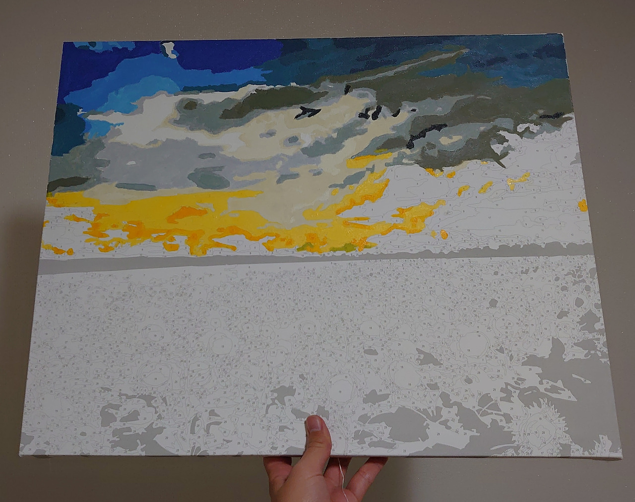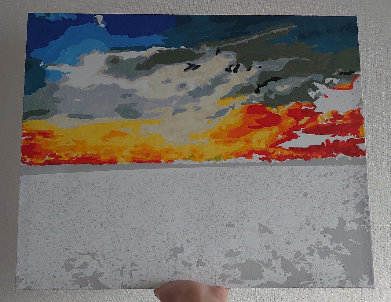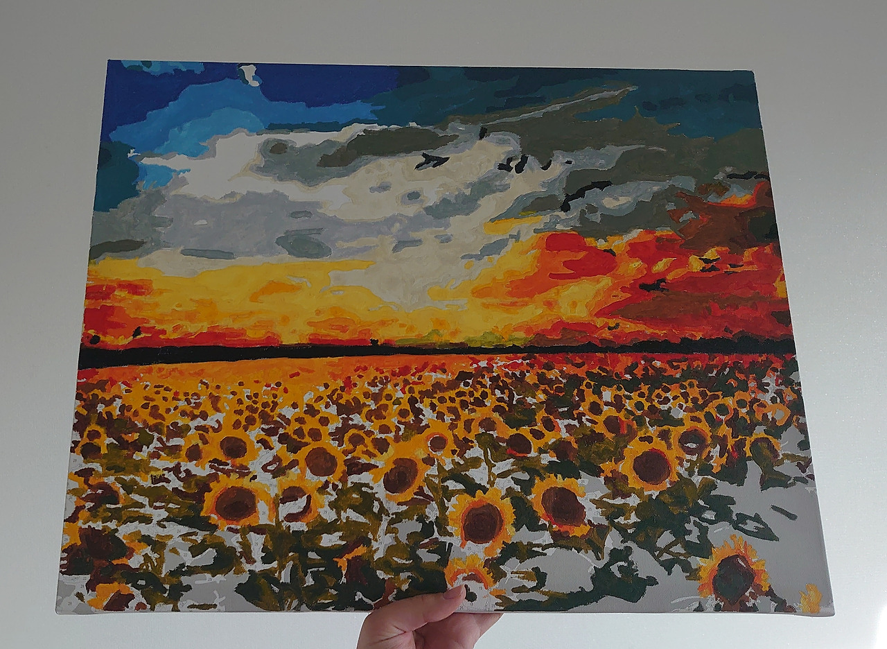 피포 페인팅은 자가격리 아이템으로 꼽히기도 한다. 요즘 트렌드는 명화 그리기도 아니고 도자기 굽는 거라고도 하더라만. 나 같은 똥 손도 이런 걸 할 수 있다는 데, 미술에 흥미를 붙일 수 있다는 것만으로도 의미가 컸다. 이걸 계기로 남 그림을 따라 하기보다 진짜 내 그림을 언젠가 그렸으면 좋겠다 싶고. 색을 칠하면서 하늘과 구름 하나 칠하는 데 이렇게 다양한 색이 쓰일 수 있다는 걸 새삼 배웠다. 노을도. 지난 주말에 하늘을 보는데 만약 이걸 유화 물감으로 칠하면 무슨 색, 무슨 색 물감을 쓰면 좋겠다 이런 생각을 하고 있었다.