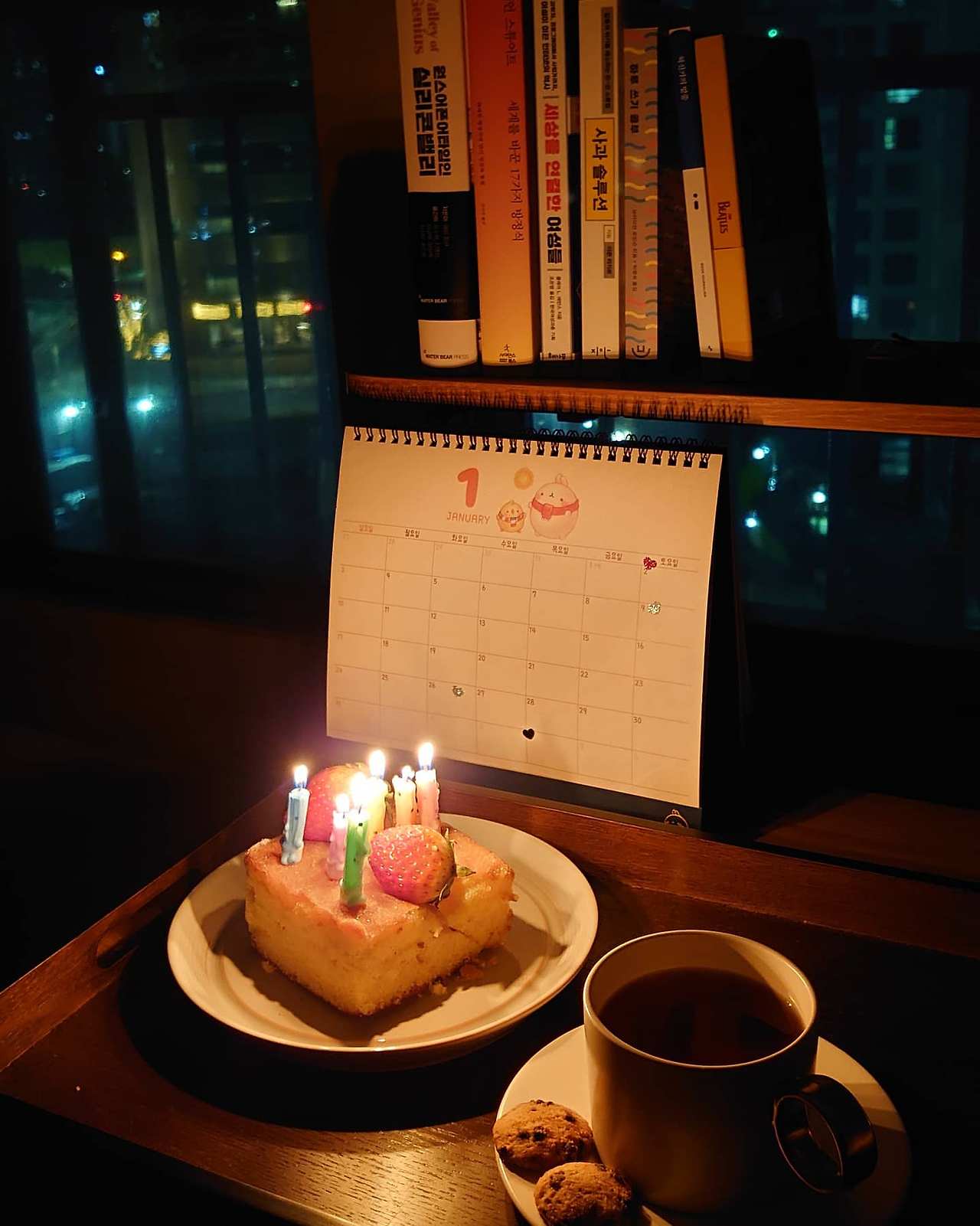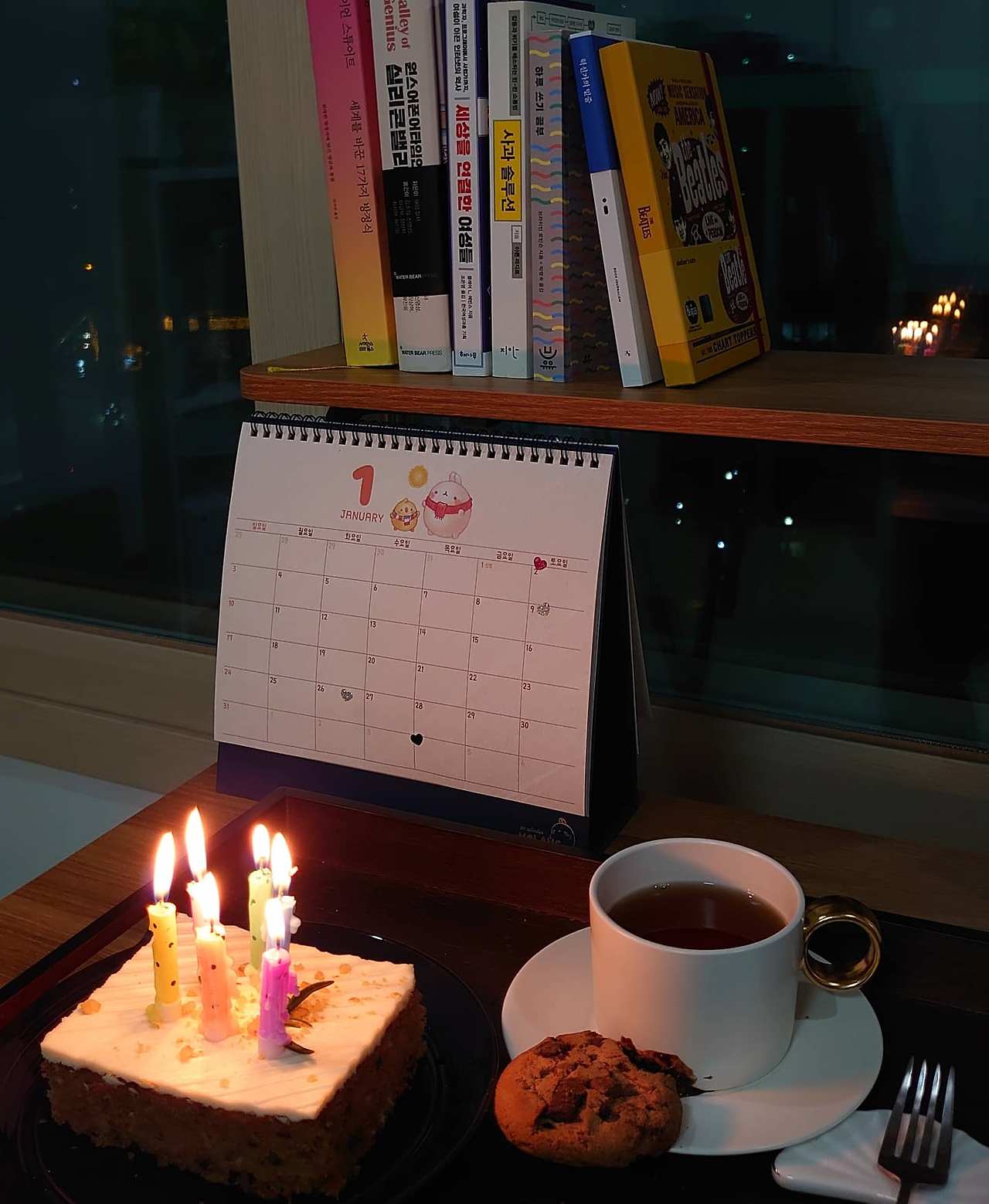 주말마다 지키는(?) 또 다른 습관이 있다면 토요일 저녁마다 작은 케이크에 촛불을 붙이는 것. 빵집에서 4000~5000원대 케이크를 사 온다. 지난 크리스마스 때 쓰고 남은 초를 꽂고 불을 붙인다. 초가 금방 녹아서 불도 금방 꺼야 하지만 잠시나마 집안 불을 모두 끄고 촛불만 붙인 채 밖을 내다볼 때 고요한 느낌이 좋다. 케이크는 베즐리에서 주로 샀다. 지난 주말에는 스코프에서 레몬 케이크를 사 왔고. 새로 산 찻잔을 두고 홍차를 내리거나 와인을 따라서 함께 곁들이는데 그 시간이 내게 선물 같다. 올해 최대한 일정을 지키고 싶은 시간.