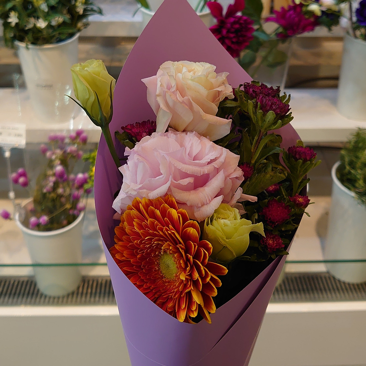 아무튼 집이 화원 같길 바라며 꽃시장 향기가 나는 디퓨저를 들이고 섬유 스프레이도 같은 걸로 뿌린다. 석양이 진 해바라기 꽃밭 그림을 그린 것도 꽃에 대한 집착과 관련이 없지 않다. 여전히 꽃을 1~2주에 한번 꼴로 사고 있다. 이제는 책상 위에도 꽃병을 두고 있다. 거베라를 990원에 팔길래 과꽃, 리시안셔스와 함께 샀다. 거베라를 원래 좋아하지는 않았는데 그날따라 예뻐 보였다. 어떤 꽃다발에 같이 들어가 있는 걸 봤는데 제법 조화롭고 아름다웠다. 심지어 가격까지 저렴하니. 거베라는 공기정화식물이고 오래가서 쓸만하다.