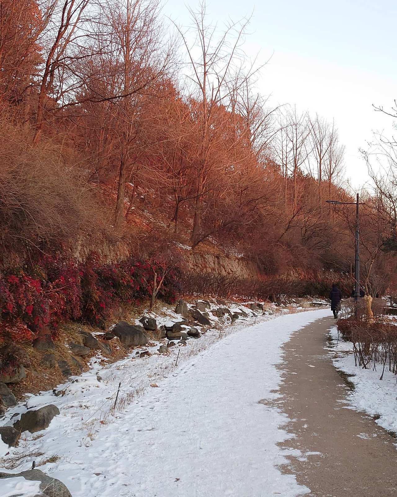 산에 자주 가기로 한 이유는- 언젠가 한번 글로 쓴 듯한데 높은 곳에 올라가면 더 멀리, 넓게 내다볼 수 있는데 그 느낌이 좋아서다. 기분도 상쾌해지고, 좁은 생각이 트이는 느낌. 내가 얼마나 작은 존재인지 새삼 실감하고. 주말에 받은 좋은 기분을 안고 평일 삶도 잘 살아보고자 다짐해보고. 한동안 거리두기 단계가 높아서 산에 가도 사람이 그리 많지 않았다. 내가 늦게 가서 그런지 모르겠지만. 남산 야외 식물원에 갔을 때는 눈도 쌓여 있고 날도 좋았는데 생각보다 사람이 없었다. 남산에서 찬바람 맞으며 아래를 내려다보는 기분이 좋았다.