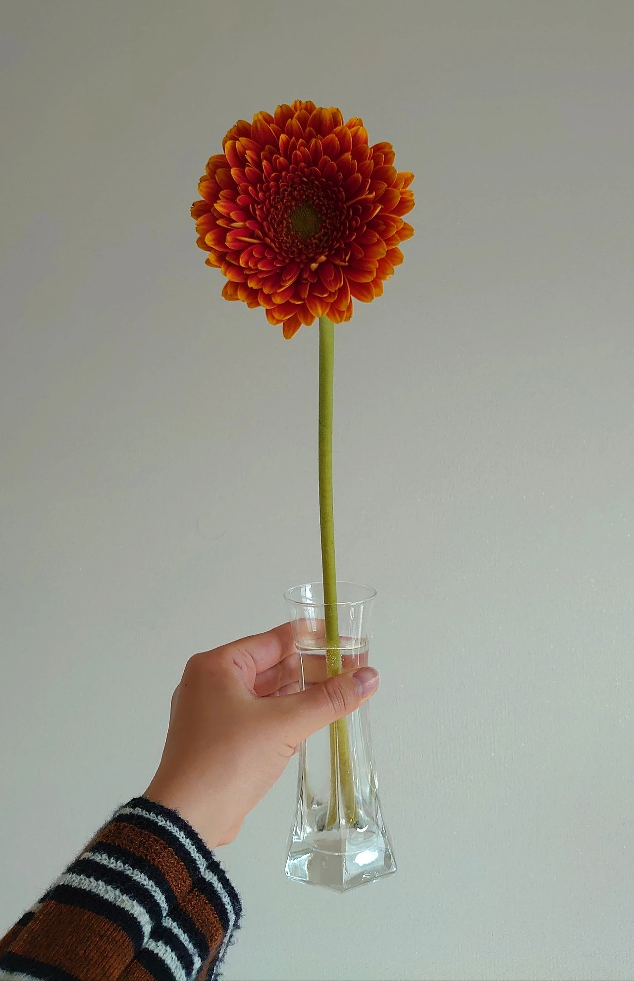 요즘은 거베라가 해바라기보다 더 좋다. 해바라기보다 더 싸기도 하지만- 거베라 한송이만 딱 놓고 보니 그 자체로 충분히 아름답다 싶다. 누군가 배경이 돼주지 않아도. 거베라는 축하 화환에 많이 쓰인다. 화환에서 본 거베라는 인조 꽃 같기도 하고 one of them 느낌이 강해서 특별해 보이지 않았다. 이번에 산 거베라는 쨍쨍한 태양처럼 보이기도 해서 마음에 들었다. 자신감 있고 당당한 느낌. 줄기도 어찌나 긴지. 매일 줄기를 조금씩 사선으로 자르고 있지만 많이 자르지는 않았다. 오래도록 고개를 치켜들고 길쭉하게 있으라고. 너답게.