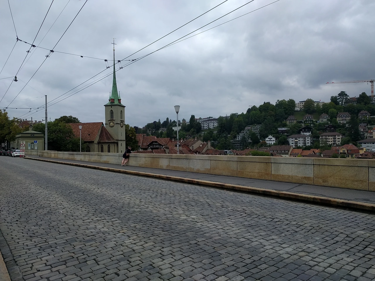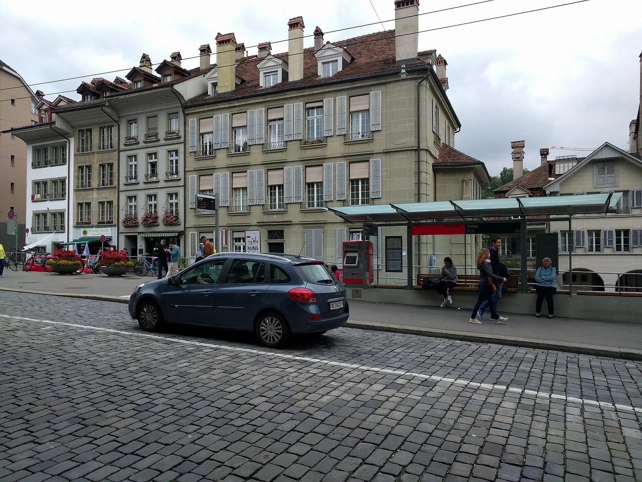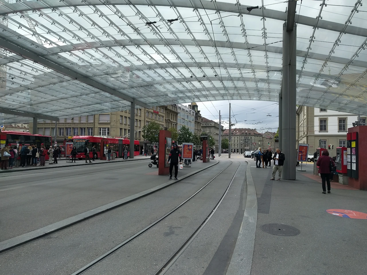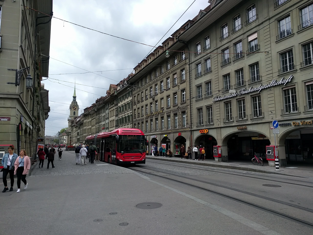 베른에서는 도보로 아레강을 보고 마르크트 광장을 지나며 시계탑, 베른 연방 궁전을 구경했다. 베른 대성당, 아인슈타인 하우스도 가다가 보고. 그날은 일요일이라서 문 닫은 상점이 많았다. 원래 인구가 적은 지, 도시가 커서 그런지 번화가에 왔는데도 무척 조용하고 한적했다. 물론 관광객은 많았다. 사진을 다시 보니 심심한 그 풍경도 멋졌다 싶지만. 베른 연방 궁전 근처에서 아래를 내려다보니 마을 풍경도 괜찮았다. 동화책이 나오는 집 같다고 해야 하나. 길가에 트램이 다니는 풍경도 운치 있었고. 아직 문 열지 않은 노천카페도 멋스러웠다.