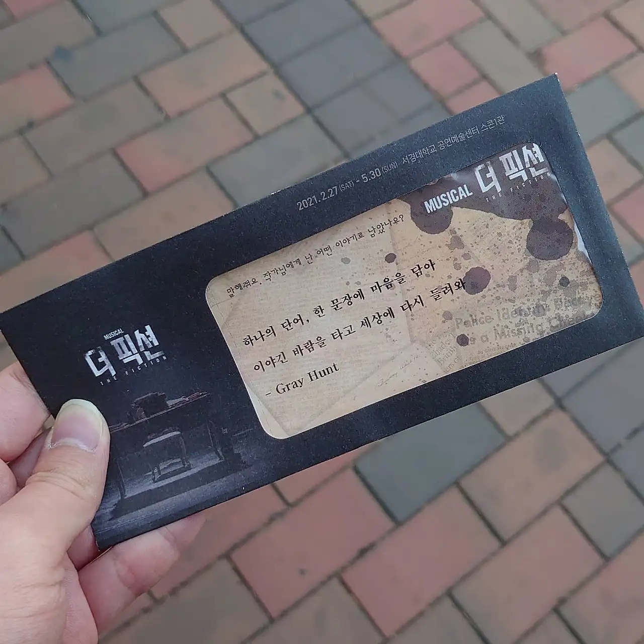 사진=딱정벌레얼마 전에 뮤지컬 '더 픽션'을 봤다. '전설의 리틀 농구단' 이후, 뮤지컬을 보는 건 약 9달 만인 듯. 유승현 배우가 더 픽션에 와이트 히스만 역으로 출연한다는 소식을 접하고 무척 고대했다. '배니싱'을 보고 싶었지만 표를 구할 수 없었고, 지난겨울 코로나 19 상황이 심각했기 때문에 공연은 꿈도 못 꿨다. 뮤지컬도 거리두기 좌석으로 인해 자리가 얼마 없었고. 배니싱은 그 시기에 했던 여러 공연 가운데 인기 공연이었던지라. 상황이 완화되고 뮤지컬 공연 티켓을 구하는 것도 전보다 덜 어려워졌다. 더 픽션도 자리가 많았다.