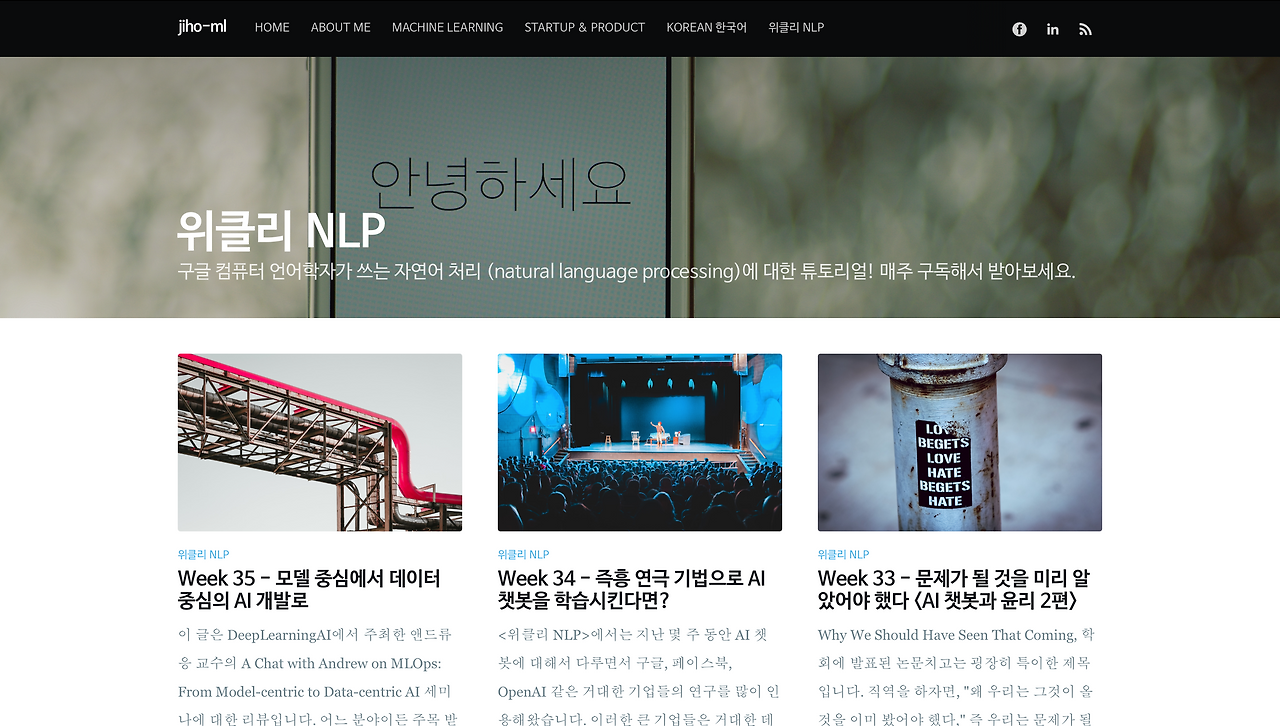 출처=박지호 님 홈페이지 중 뉴스레터 '위클리 NLP' 코너 화면데이터 세트 신뢰도 문제를 다룬 기사는 지난주 MIT 테크놀로지 리뷰에 또 나왔다. 이미지 인식 데이터 세트인 이미지넷 이야기인데 이 데이터 세트도 오류가 많다는 이야기. MIT에서 가장 많이 인용된 AI 데이터 세트를 연구한 결과 중 일부다. 이미지넷은 이미지 인식 데이터를 대량으로 배포하고 있고, "머신러닝 모델 평가에 쓰는 핵심 데이터 세트"라는 점에서 심각한 문제이지 않을까 싶은데- 기사에 따르면, 여기에는 "인종차별 또는 성차별주의 라벨이 있고, 사람 동의 없이 얼굴 사진도 쓰고 있다"라고 한다. "틀린 라벨도 많고".