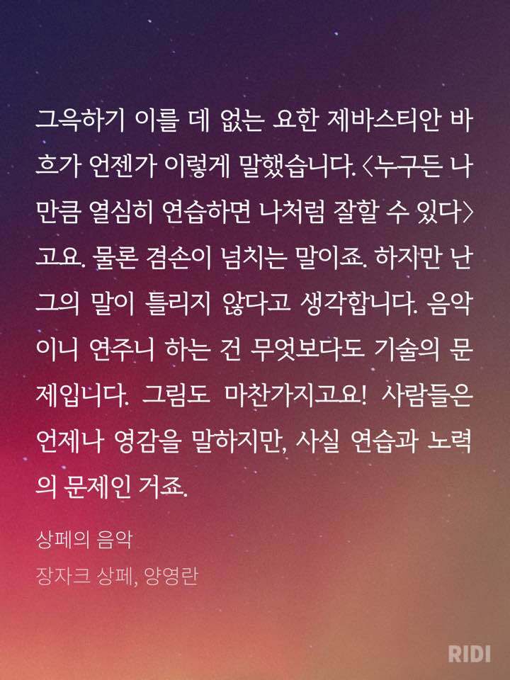 작업방식도 함부로 바꾸지 않기로 했다. 내가 그동안 그렇게 한 건 이유가 있어서고, 그 이유는 타당했다. 이런 생각을 한 이유도 상페의 음악과 김은희 작가 인터뷰 영향이 컸다. 작업 과정이 효율적이지 못하고 너무 오래 시간을 끈다 싶을 때도 있다. 오래 고민했는데 내용을 많이 못 쓰고, 그나마 쓴 건 쓰레기 같고. 자괴감을 느끼고. 근데 결국 그렇게 하다가 어떻게든 개선해서 완성하지 않나. 스스로 비효율적으로 일한다고 자책했는데 그 과정이 있어서 이렇게 쓸 수 있었던 거니 너무 나쁘게 생각지 않기로 했다. 충분한 시간이 필요하다면 최대한 그 시간을 확보하고, 작업에 온전히 집중하도록 환경을 만들고 자신을 그 환경 안에 집어넣자고.